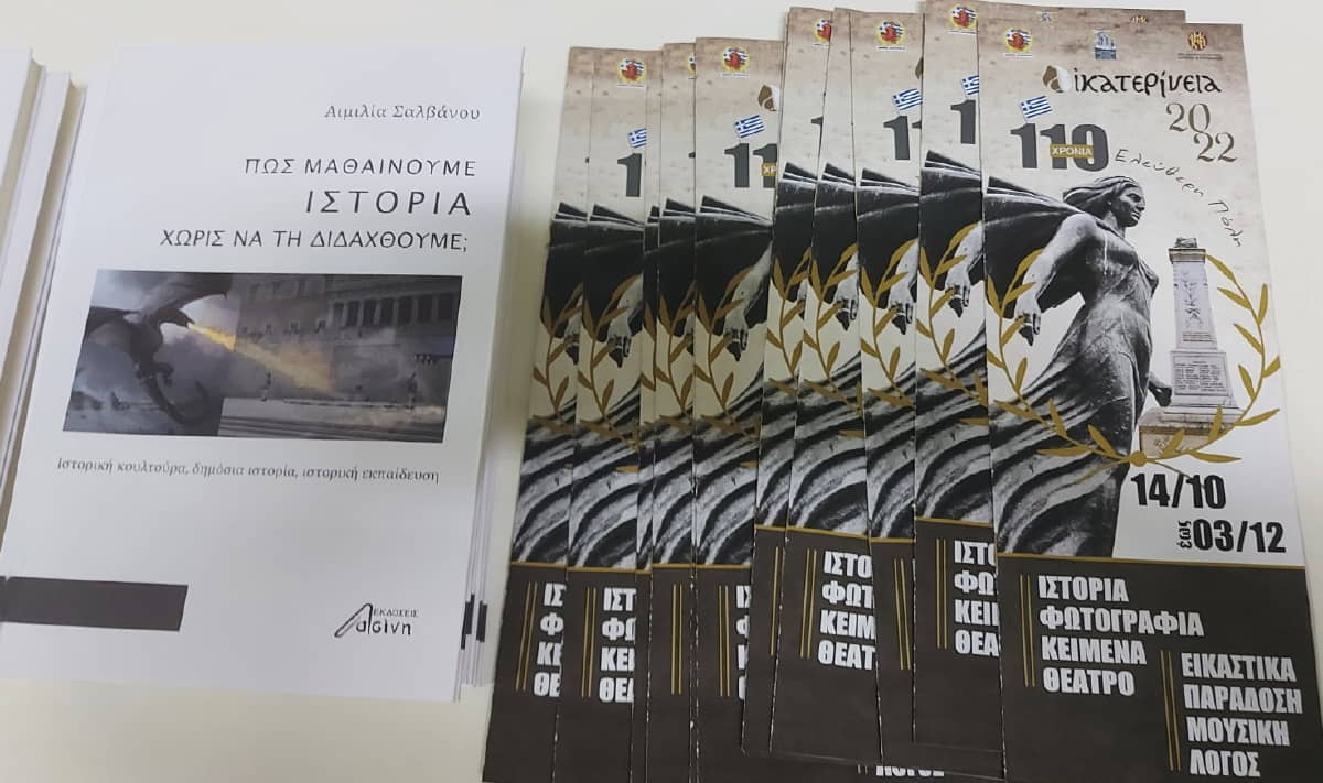 «Πώς μαθαίνουμε ιστορία χωρίς να τη διδαχθούμε;» Παραδείγματα και απαντήσεις για το παρόν και το μέλλον μέσα από την ιστορία, στην παρουσίαση του βιβλίου της Αιμιλίας Σαλβάνου, το οποίο κυκλοφορεί από τις εκδόσεις Ασίνη. Η ενταγμένη στα φετινά Αικατερίνεια εκδήλωση φιλοξενήθηκε χθες το απόγευμα, στο πνευματικό κέντρο από τον Οργανισμό Πολιτισμού Δήμου Κατερίνης, σε συνεργασία με την Αστική μη κερδοσκοπική εταιρεία «Φίλοι του Μουσείου πόλης της Κατερίνης».