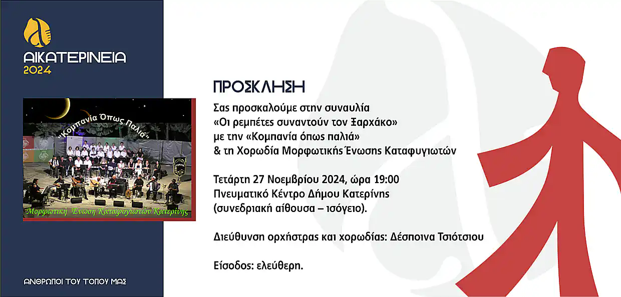 Ολύμπιο Βήμα » Επικαιρότητα » Εκδηλώσεις » Αικατερίνεια – Συναυλία: «Οι ρεμπέτες συναντούν τον Ξαρχάκο»