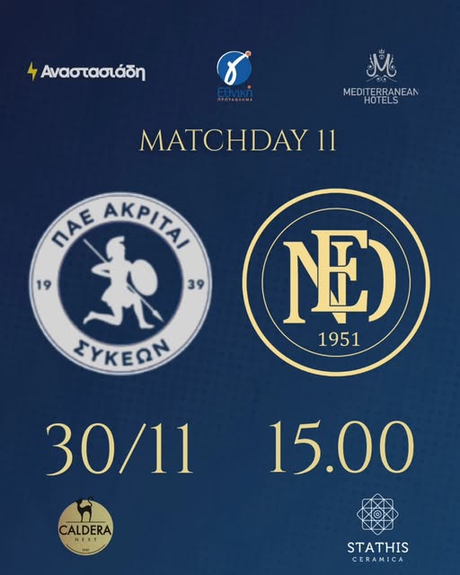 Στις Συκιές για την 11η αγωνιστική ταξιδεύει η ομάδα του Εθνικού Νέου Κεραμιδίου για να αντιμετωπίσει τους Ακρίτες.