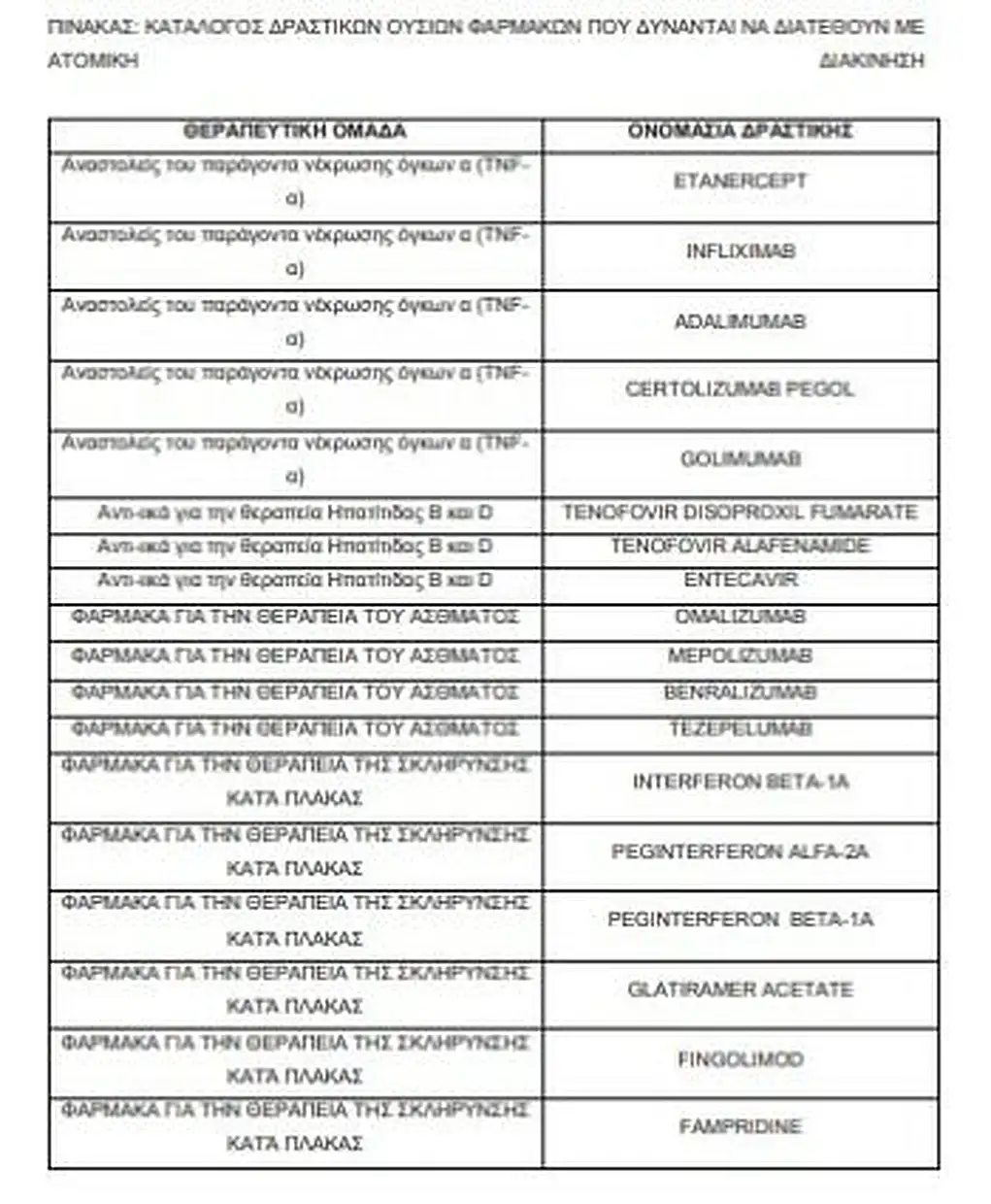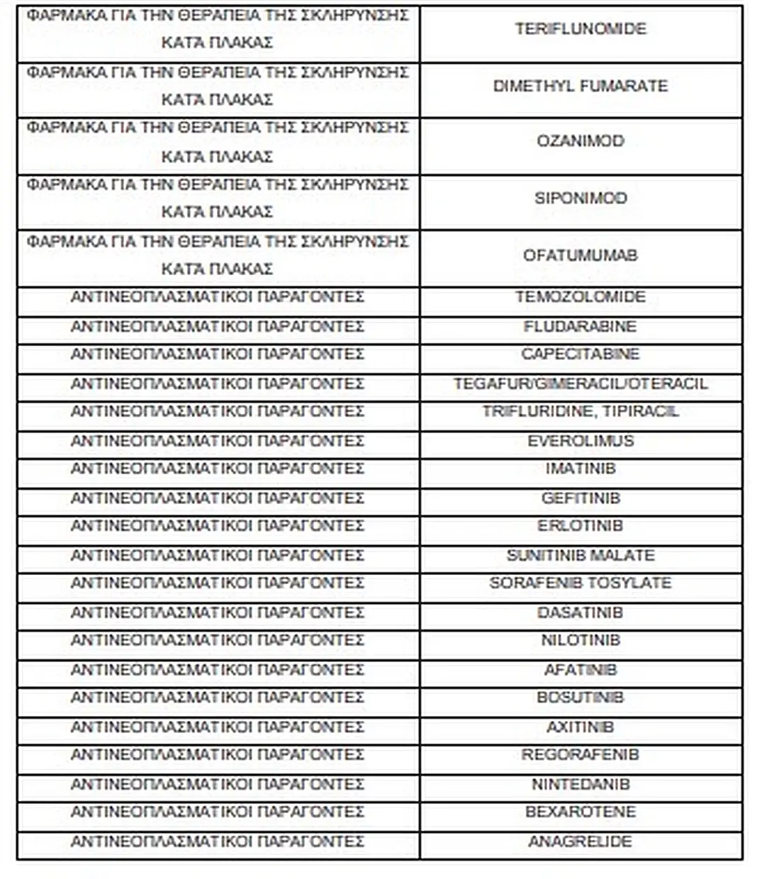 Οι πέντε θεραπευτικές κατηγορίες που εντάσσονται στη ρύθμιση