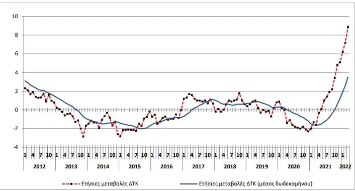 Τις μεγαλύτερες ετήσιες αυξήσεις (Μάρτιος 2021-Μάρτιος 2022) κατέγραψαν: