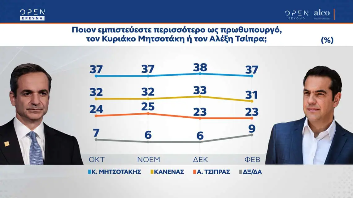 Δημοσκόπηση Alco για το Open: Στο 9,6% η διαφορά ΝΔ ΣΥΡΙΖΑ