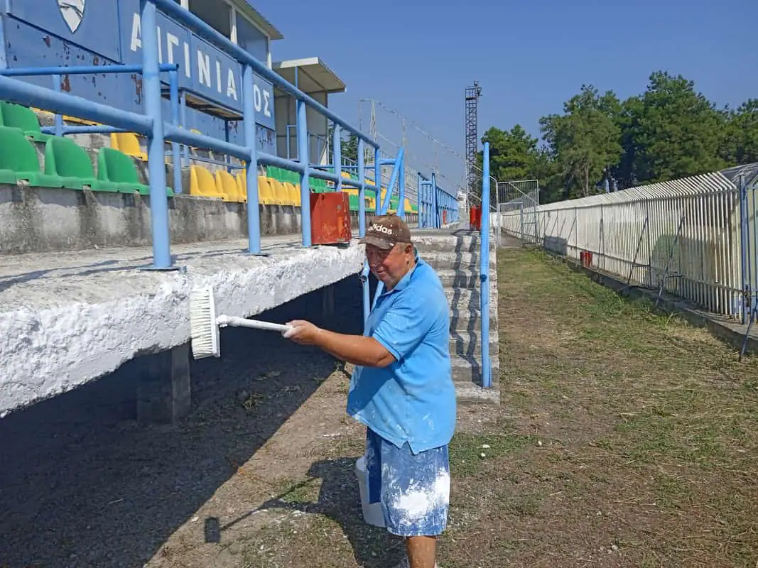 Με την ευκαιρία της Μουσικής εκδήλωσης της Παρασκευής με τον Ζαφείρη Μελά στο Δημοτικό γήπεδο Αιγινίου ” Γιάννης Παραλυκίδης “, αλλά και της έναρξης της νέας αγωνιστικής περιόδου 2022-23 , η έδρα της Αιγινιώτικης ομάδας αλλάζει όψη με έργα καθαριότητας και καλλωπισμού των χώρων ( αποδυτήρια  , γραφεία , WC , κερκίδες και περιβάλλον χώρος ) .