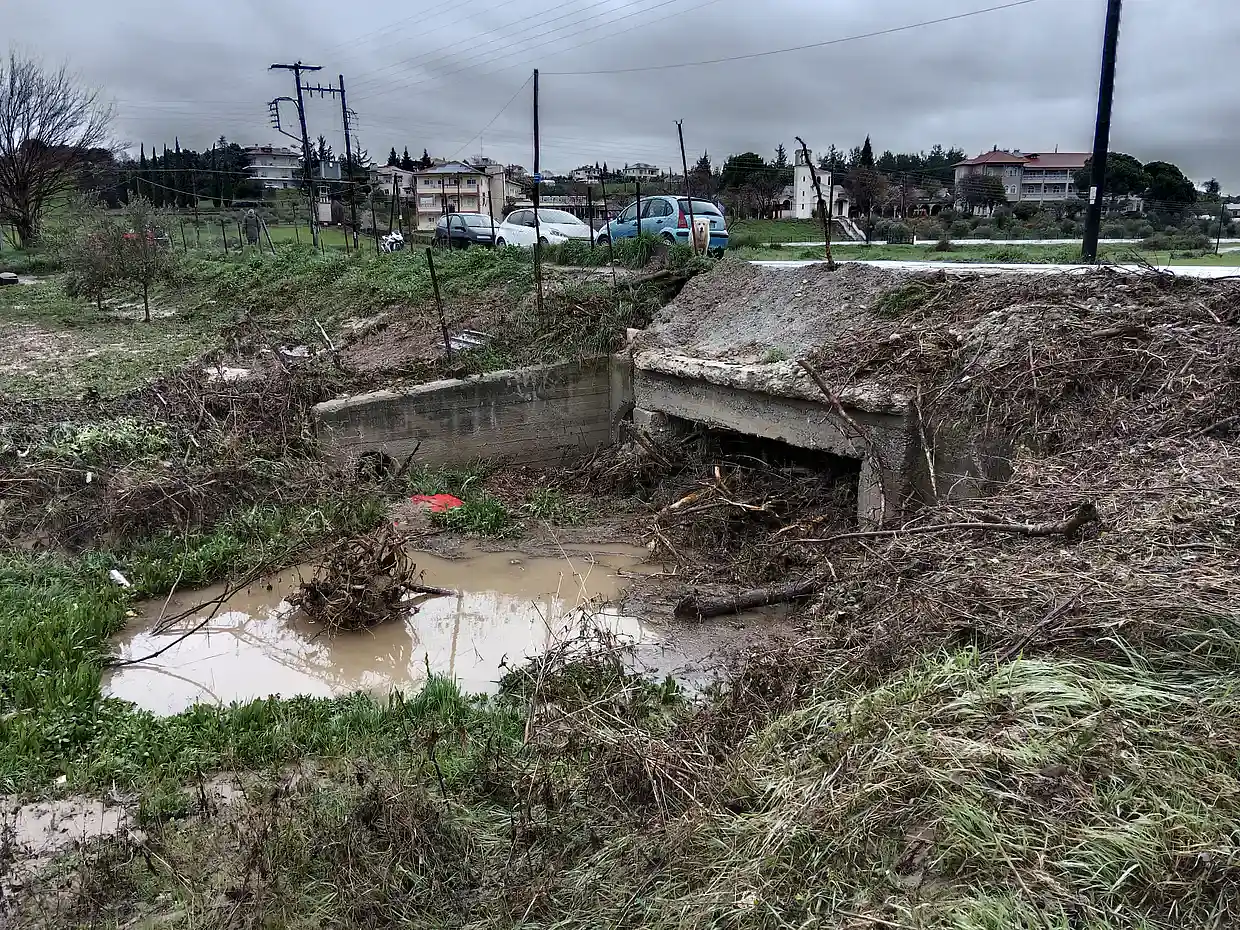 Στο Σβορώνο, η έλλειψη συντήρησης και καθαρισμού των καναλιών, σε συνδυασμό με την απουσία ολοκληρωμένου αντιπλημμυρικού δικτύου, οδήγησε