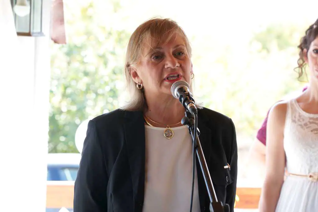 Η Αντιπεριφερειάρχης Πιερίας, Σοφία Μαυρίδου, ήταν το πρώτο τιμώμενο πρόσωπο. Παρέλαβε από τον κ. Μπίντα το εμβληματικό σύμβολο των «ΟΛΥΜΠΙΩΝ ΕΝ ΔΙΩ» τον «ΛΙΘΟ ΑΓΙΕΥΣ». Χαιρετίζοντας, τόνισε: «Θερμά συγχαρητήρια στον πρόεδρο και καθηγητή μου Αθανάσιο Μπίντα, καθώς και με πολλές ιδιότητες την άοκνη και ασταμάτητη, Μυράντα Παππά. Η επιτυχία προήλθε από τη συλλογική προσπάθεια. Δεσμευόμαστε τόσο εγώ όσο και ο Περιφερειάρχης Κεντρικής Μακεδονίας, Απόστολος Τζιτζικώστας, ότι θα συνεχίσουμε να σας στηρίζουμε.»