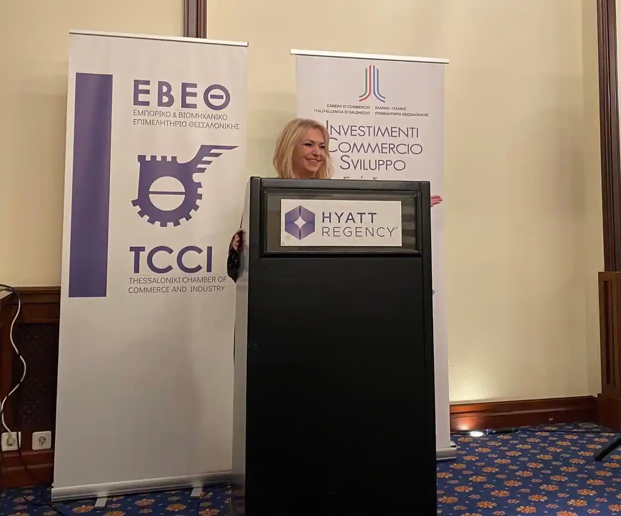 Υπενθύμισε ότι η Ελλάδα, για πρώτη φορά, φέτος διαθέτει εθνική στρατηγική για τη βιομηχανία, που στόχος είναι η συνεισφορά της στο ΑΕΠ να φτάσει στο 15% ώς το 2030. Αναφέρθηκε στην ένταξη 20 βιομηχανικών πάρκων στο σχετικό πρόγραμμα χρηματοδότησης του Ταμείου Ανάκαμψης, σημειώνοντας ότι στόχος είναι στα επόμενα πέντε χρόνια τα βιομηχανικά πάρκα να καταστούν πράσινα και έξυπνα, και έξι από αυτά βρίσκονται στη Βόρεια Ελλάδα.