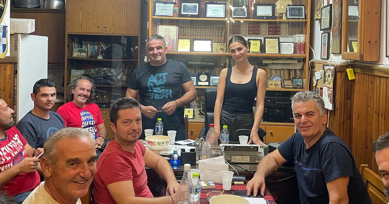 Αμέσως μετά την εβδομαδιαία χορευτική και χορωδιακή πρόβα την υποδέχθηκαν με μεγάλη χαρά! Τη φίλεψαν ντόπιο τσιπουράκι και αφού της πρότειναν να καθίσει στη θέση του προέδρου, συζήτησαν για το χωριό και την παράδοση. Η φιλοξενία ήταν μοναδική και το σίγουρο είναι ότι πλέον θα τα λένε πιο συχνά…»