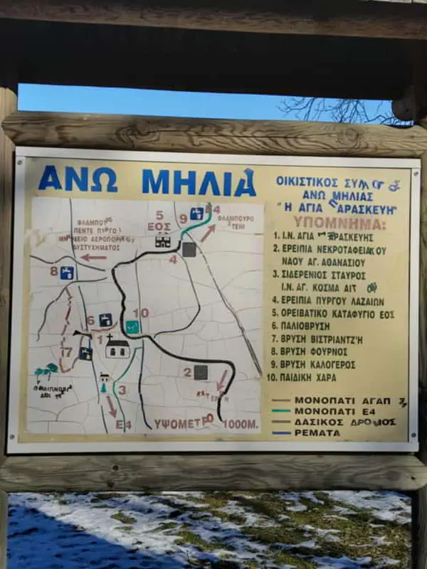 Γύρω από την ΄Ανω Μηλιά, ιδιαίτερα δημοφιλή είναι τα μονοπάτια των «Μουσών», της «Αγάπης» και των «Ευχών» τα οποία είναι ιδανικά για όλη την οικογένεια.