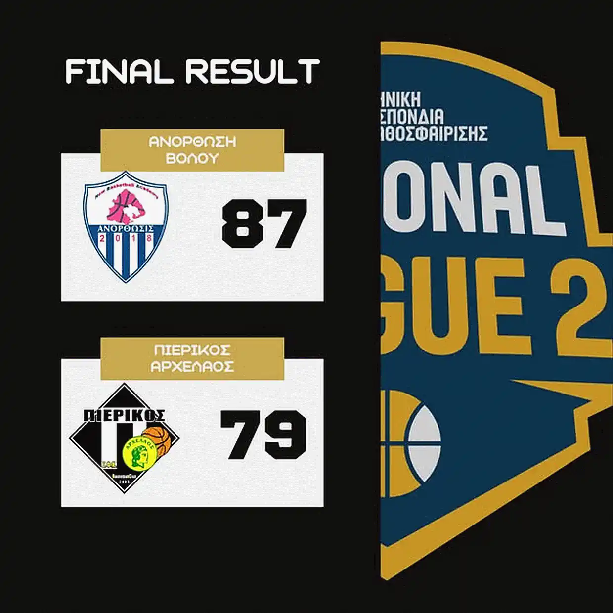 Ο Πιερικός Αρχέλαος γνώρισε την ήττα χθες στον Βόλο με 87-79 απο την τοπική Ανόρθωση στο πλαίσιο της 19ης αγωνιστικής του 4ου ομίλου του πρωταθλήματος της Νational League 2.