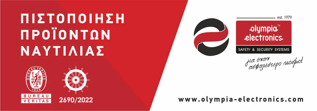 Η OLYMPIA ELECTRONICS A.E. από το 2015 έχει διεισδύσει στον χώρο της ναυτιλίας με σκοπό να συνάψει νέες συνεργασίες με μεγάλες ναυτιλιακές εταιρείες και να ενσωματώσει τα προϊόντα της στην κατασκευή νέων πλοίων. Κύριο πλεονέκτημα της εταιρείας είναι τα πιστοποιημένα προϊόντα που διαθέτει και διοχετεύει στην αγορά. Πρόσφατα η OLYMPIA ELECTRONICS A.E. απέκτησε πιστοποίηση για τα προϊόντα MARINE από το έγκριτο φορέα πιστοποιήσεων BUREAU VERITAS Marine & Offshore, ένα πολύτιμο εφόδιο που εγγυάται την ασφάλεια, προάγει την ποιότητα και ενισχύει την εμπιστοσύνη.