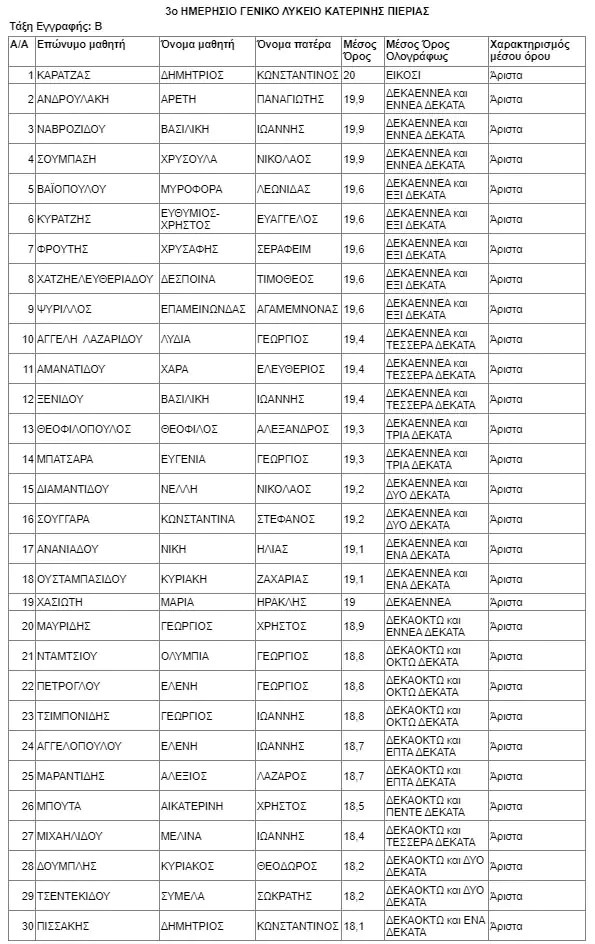 Ολύμπιο Βήμα » Ελλάδα » Παιδεία » Αριστούχοι 3ου ΓΕΛ Κατερίνης 2021 – 2022