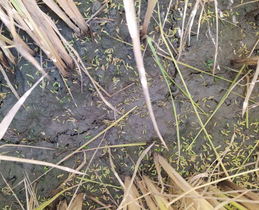 Το κλιμάκιο των γεωπόνων της Π.Ε. Πιερίας, παρουσία τοπικών και υπηρεσιακών παραγόντων διαπίστωσε, πως στην Δ.Κ. Αιγινίου και συγκεκριμένα πλησίον του ποταμού Αλιάκμονα, πράγματι υπέστησαν ζημιές οι καλλιέργειες ρυζιών, των οποίων η απώλεια παραγωγής οφείλεται στο τίναγμα του καρπού στο έδαφος εξαιτίας της έντονης χαλαζόπτωσης, σε συνδυασμό με ανεμοθύελλα, που σε ορισμένα χωράφια ήταν ολοκληρωτική. Οι γεωπόνοι διαπίστωσαν πως οι εν λόγω ζημιές αφορούν 7.000 στρέμματα καλλιεργειών ρυζιού.