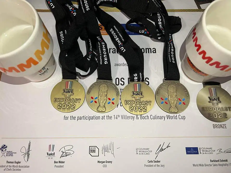 Χάλκινο μετάλλιο στο Παγκόσμιο Κύπελλο Μαγειρικής Villeroyet Boch 2022 που διεξήχθη 26-30 Νοεμβρίου στο Λουξεμβούργο, στην κατηγορία Community Catering, απέσπασε η Culinary Team Greece της Ένωσης Επαγγελματιών Μαγειρικής Ελλάδας – Culinary Professionals Greece, προσθέτοντας άλλη μια επιτυχία στο ενεργητικό της μετά το χάλκινο μετάλλιο που κατέκτησε το 2020 στους Ολυμπιακούς Αγώνες Μαγειρικής στη Στουτγάρδη. Μια ακόμη διάκριση για την ελληνική ομάδα, σε μια διοργάνωση που συμμετείχαν 100 επιλεγμένες ομάδες chef από 55 χώρες από όλο τον κόσμο.