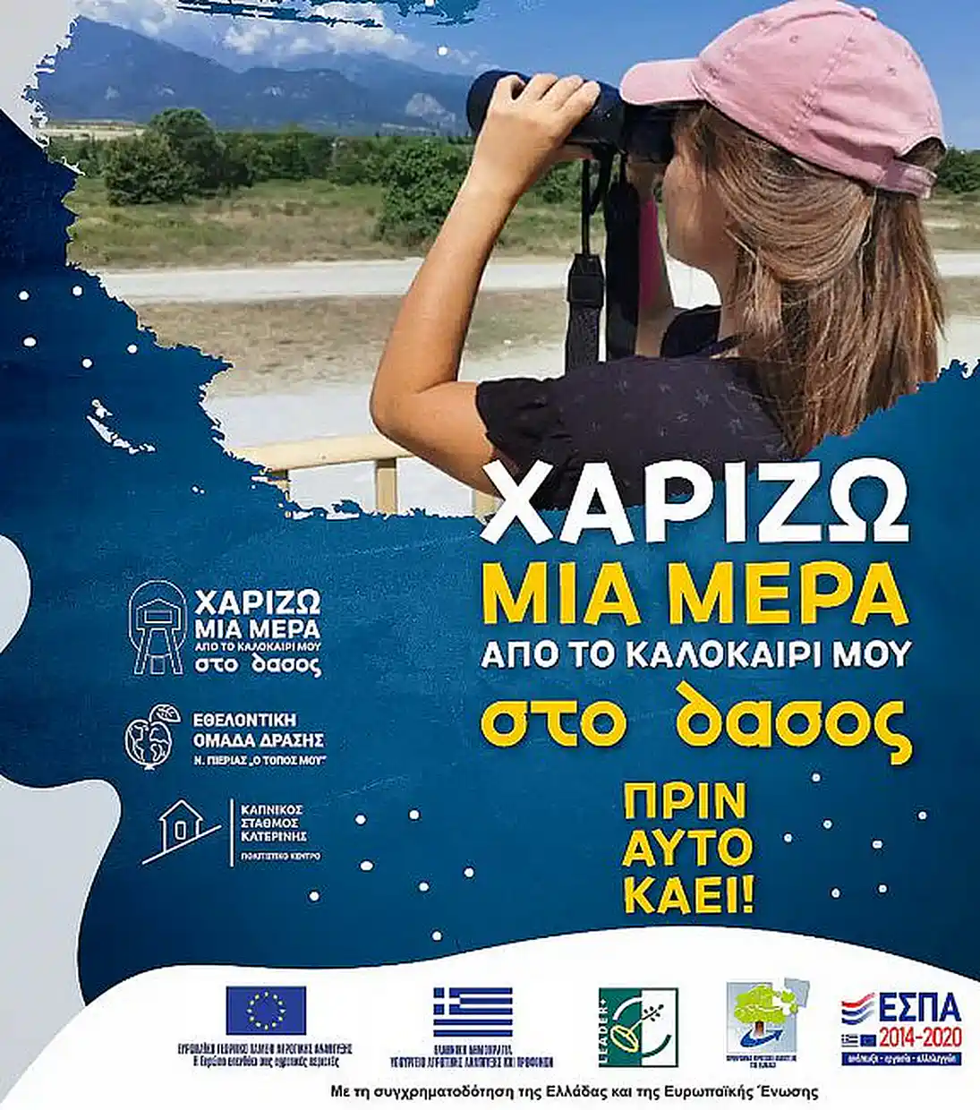 Η δράση «Χαρίζω μια μέρα από το Καλοκαίρι μου στο Δάσος» επιστρέφει και το φετινό καλοκαίρι από την Εθελοντική Ομάδα Δράσης Ν. Πιερίας «Ο Τόπος μου» και αποτελεί πλέον ένα χρήσιμο «εργαλείο» στα χέρια της Πυροσβεστικής Υπηρεσίας, διότι πέρα από τις έγκαιρες πληροφορίες που προσφέρονται από τους πολίτες, η δράση συμβάλλει στην ευαισθητοποίηση του κοινωνικού συνόλου και στην καλλιέργεια της συλλογικής ευθύνης.