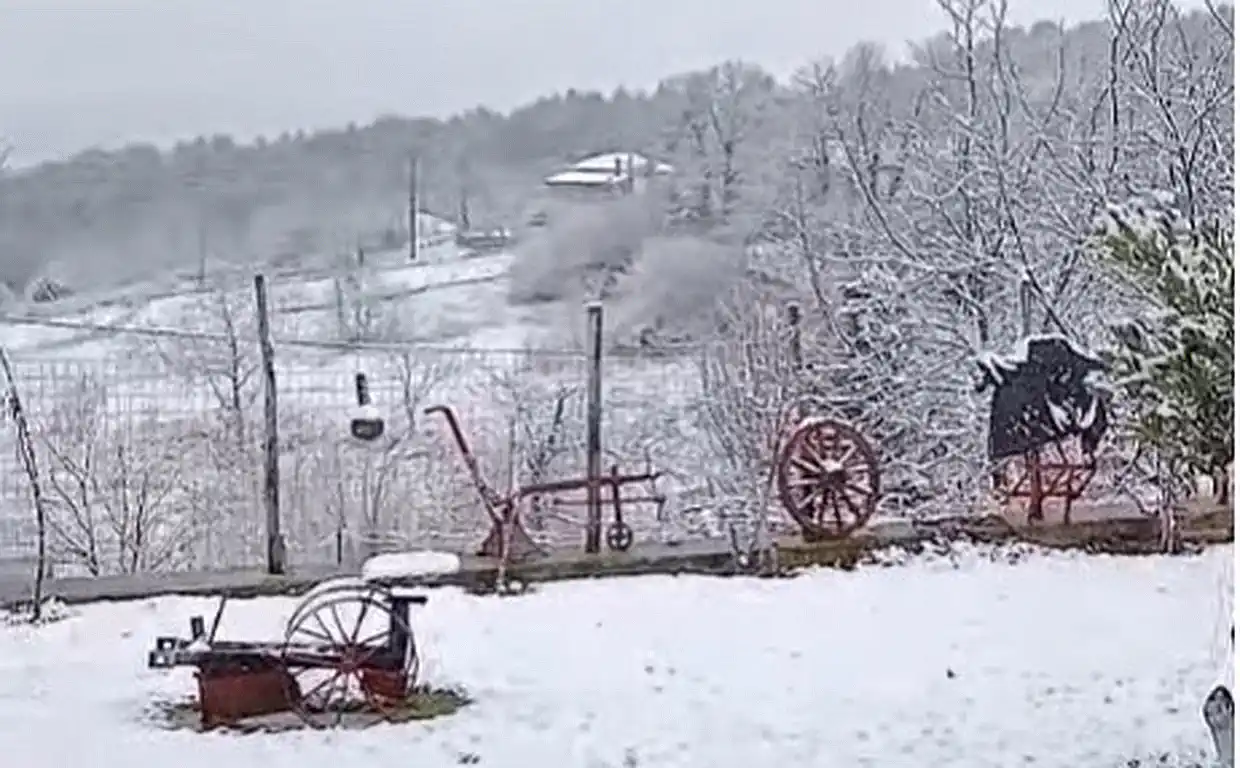 Χιονίζει στην Άνω Μηλιά Πιερίας (βίντεο)