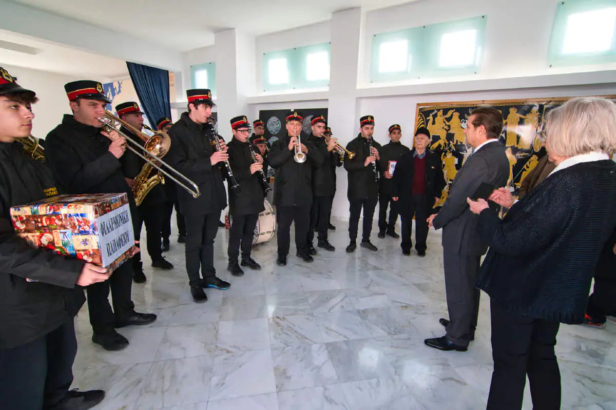 Η Φιλαρμονική του Παπαφείου Ορφανοτροφείου εκπροσώπησε τη Θεσσαλονίκη στον Πρόεδρο Διονύση Πασχάλη με διεθνές ρεπερτόριο χριστουγεννιάτικων τραγουδιών και πραγματικά συγκίνησε τους παριστάμενους με το εμβατήριο «Μακεδονία Ξακουστή», που αντήχησε από άκρη σε άκρη στο χώρο του Αλεξανδρείου.