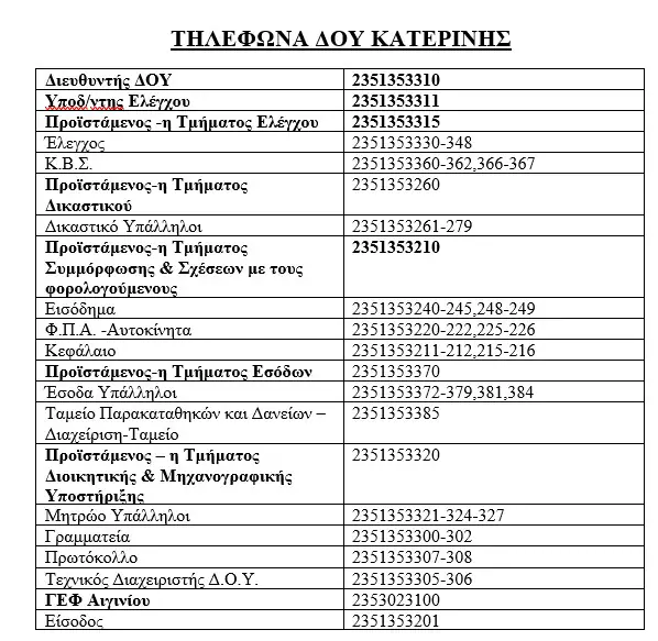 Δ.Ο.Υ Κατερίνης: Τηλεφωνικές γραμμές – Διακοπή λειτουργίας και νέοι τηλεφωνικοί αριθμοί