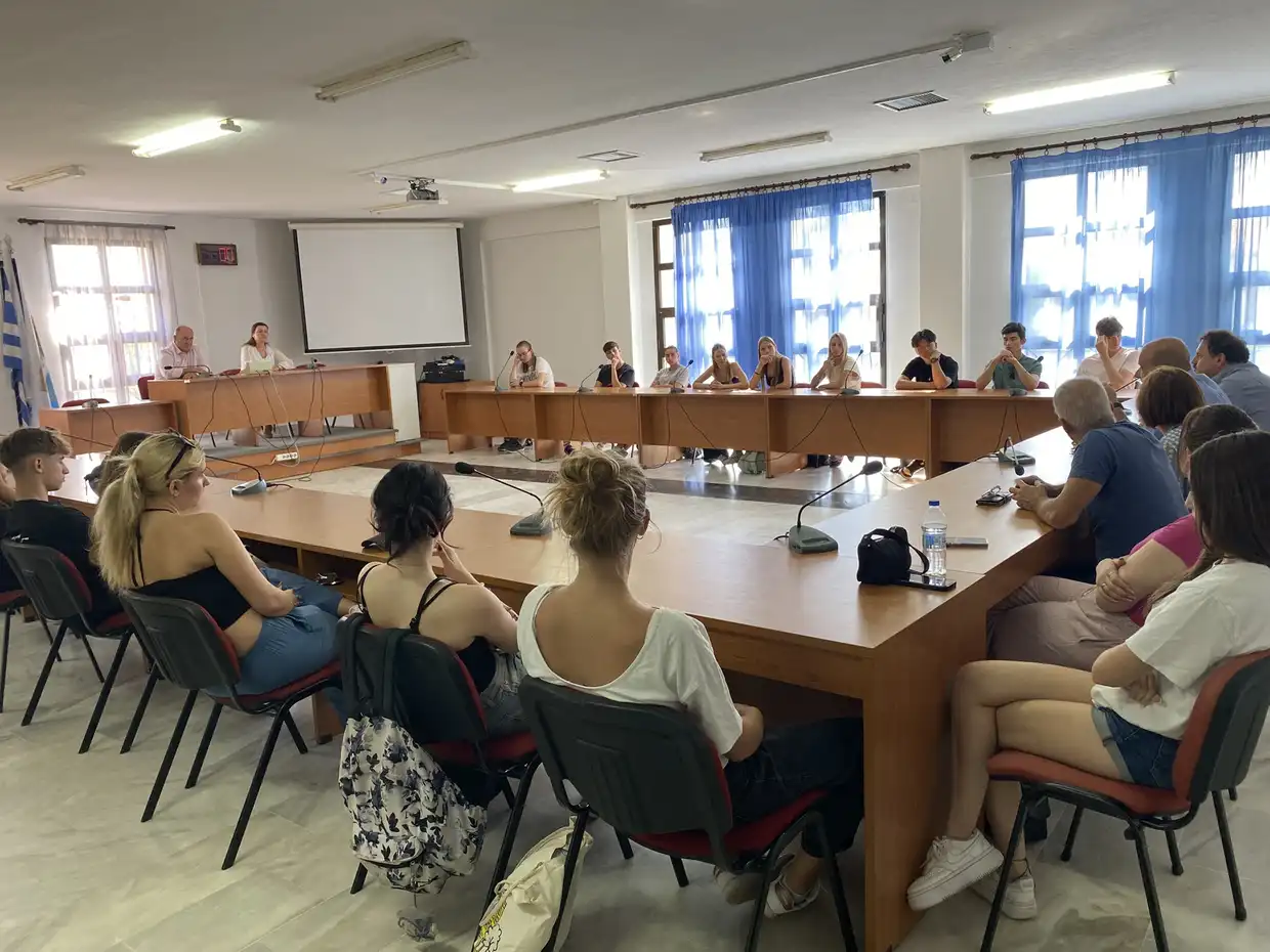 Η συνάντηση πραγματοποιήθηκε στην αίθουσα συνεδριάσεων του Δημοτικού Συμβουλίου στο Λιτόχωρο, κατά την οποία ο Δήμαρχος, κ. Γερολιόλιος, και η αντιδήμαρχος Παιδείας, Σοφία Ζουρζούρα, συνομίλησαν με τους μαθητές και τους καθηγητές τους.