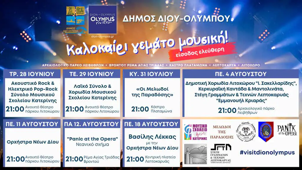 Ο Δήμος Δίου-Ολύμπου σας προσκαλεί σε ένα καλοκαίρι γεμάτο μουσική!