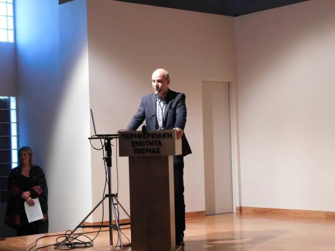 Κατά τον χαιρετισμό του Δήμαρχος Δίου-Ολύμπου Βαγγέλης Γερολιόλιος, υπογράμμισε το γεγονός ότι χάρη στις ανασκαφικές εργασίες στο αρχαιολογικό πάρκο του Δίου, ένα κατεξοχήν δημιούργημα του αείμνηστου καθηγητή αρχαιολογίας Δημήτρη Παντερμαλή, κάτοικοι και επισκέπτες της περιοχής αλλά και οι νεότερες γενιές έχουν σήμερα πρόσβαση σε ανεκτίμητα ευρήματα που ήρθαν στο φως από τη γη του Δίου, όπως τα αντίκρυσε ο ίδιος ο Μέγας Αλέξανδρος και οι Μακεδόνες βασιλείς.