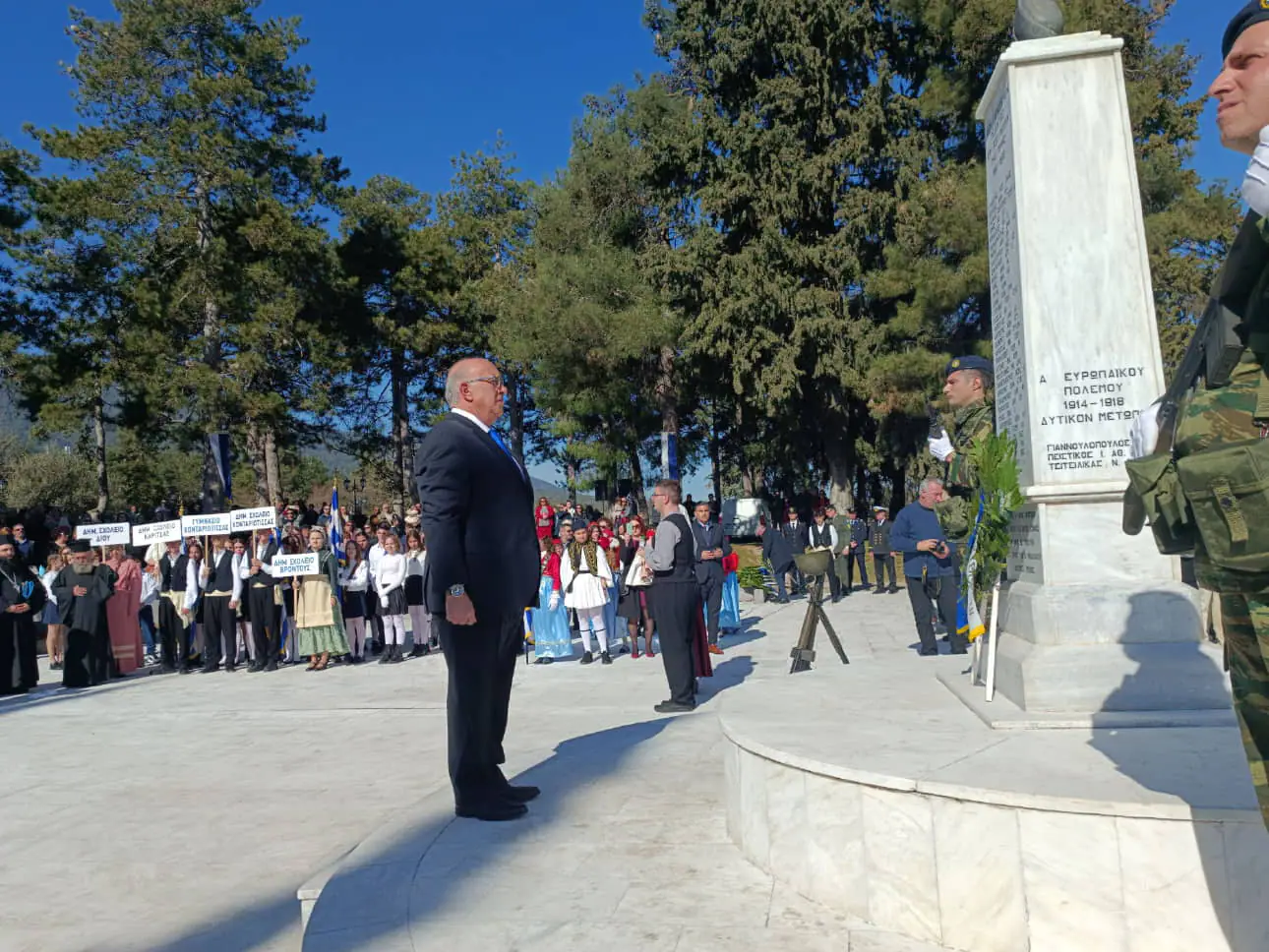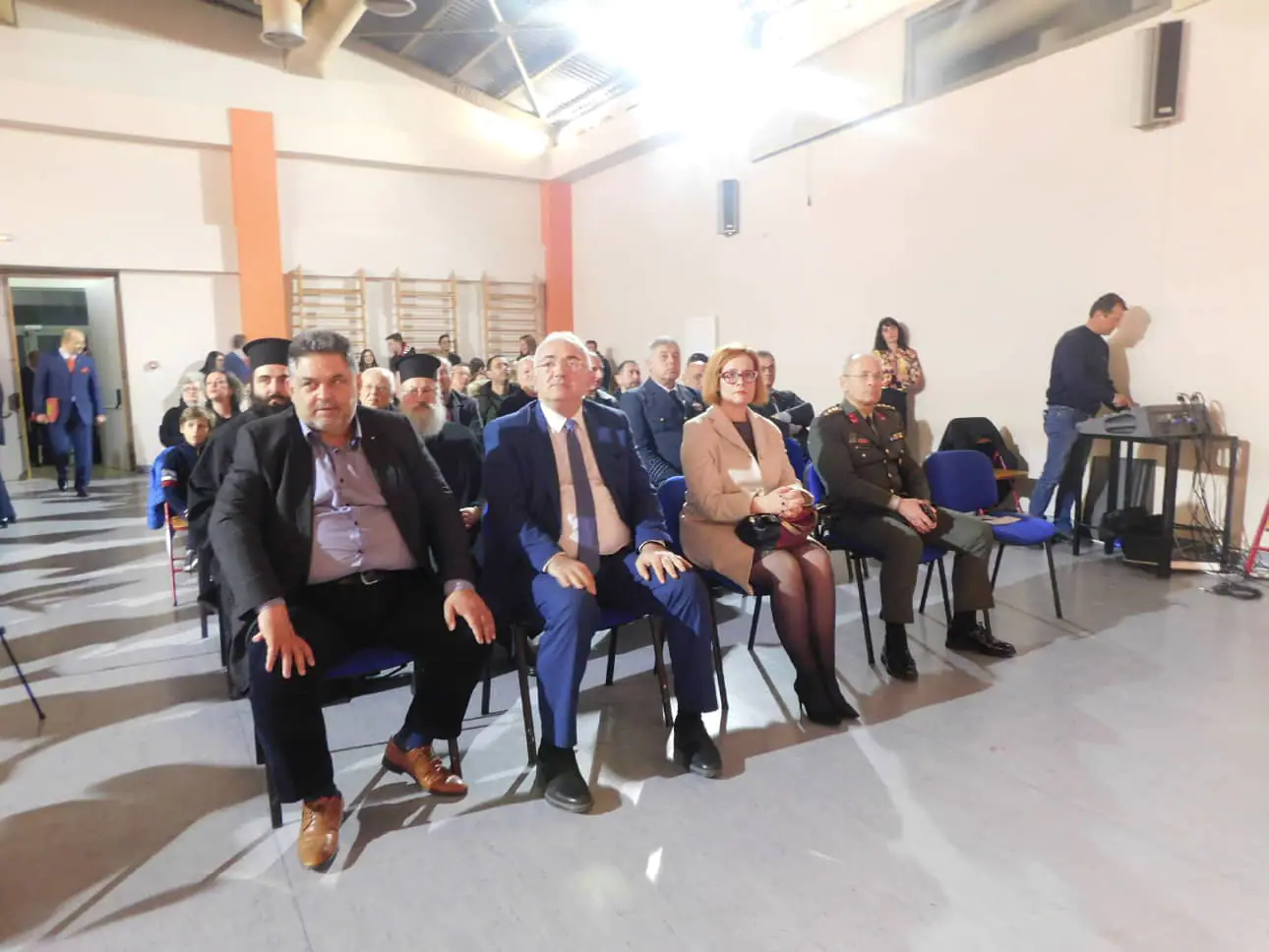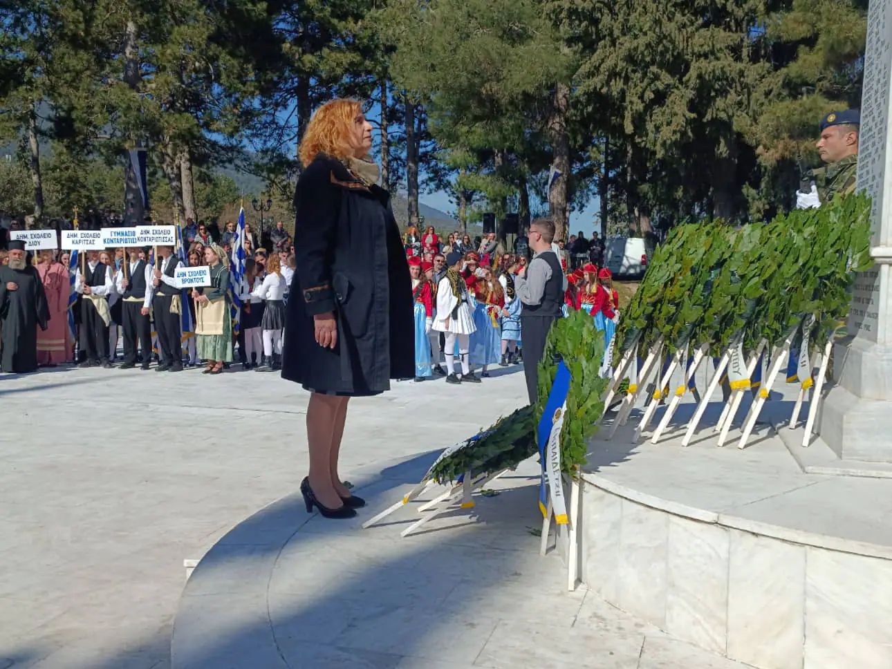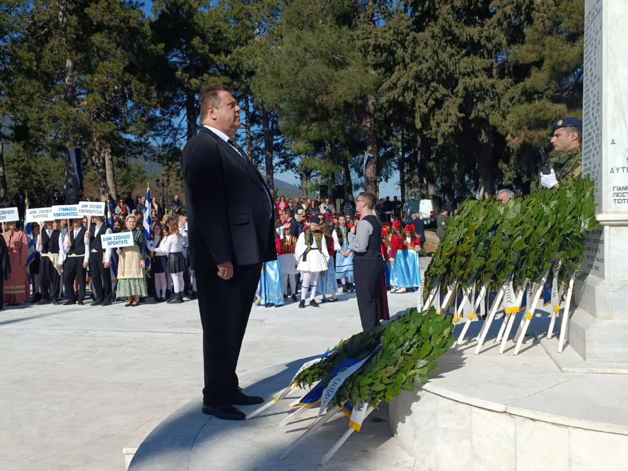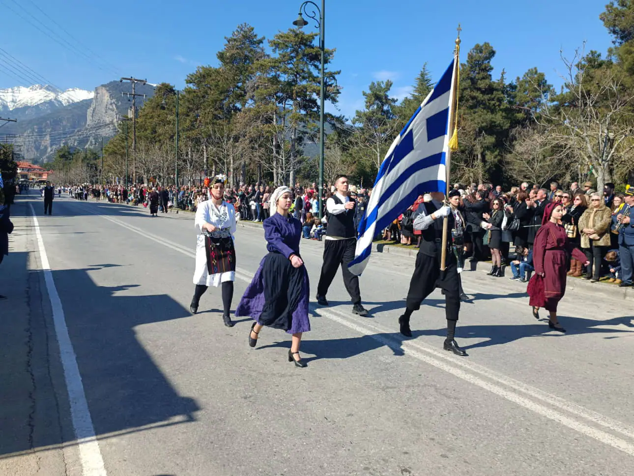 Οι ολύμπιοι επαναστάτες μας δείχνουν ότι οι μάχες που δίνονται έχουν αξία”. Χαιρετισμό απηύθυναν επίσης ο κ. Κυριάκος Ξυδιάς, Δήμαρχος του Δήμου Γερμασόγειας Κύπρου, αδελφοποιημένου Δήμου με τον Δήμο Δίου-Ολύμπου, η Αντιπεριφερειάρχης Πιερίας κα Σοφία Μαυρίδου και οι βουλευτές Πιερίας κ. Σάββας Χιονίδης και κα Μπέττυ Σκούφα.