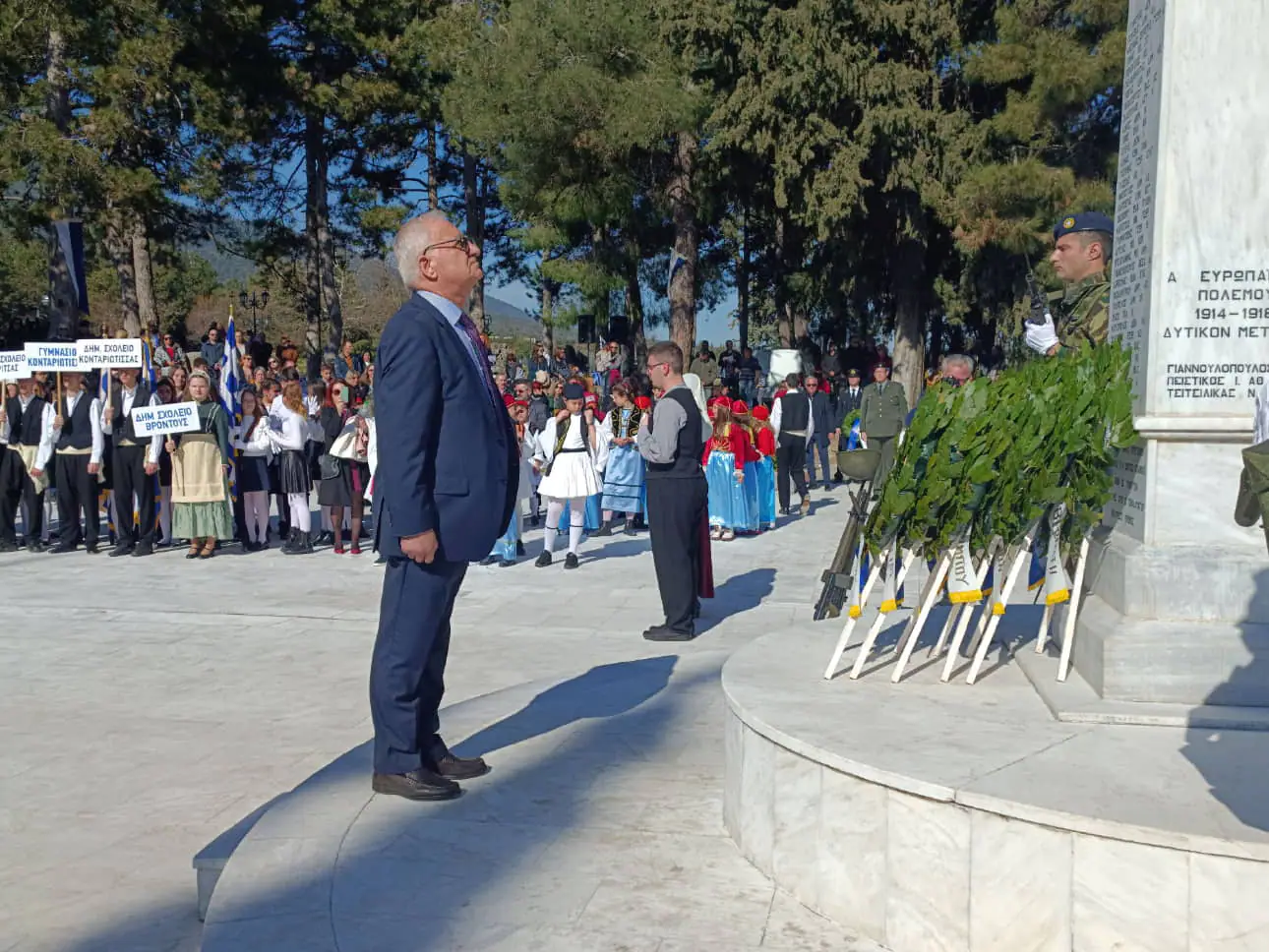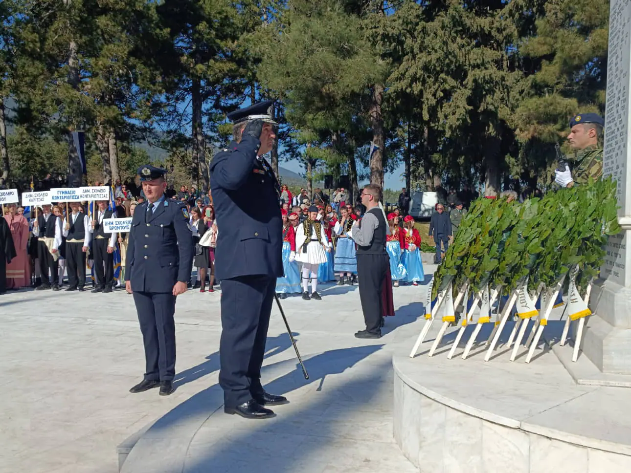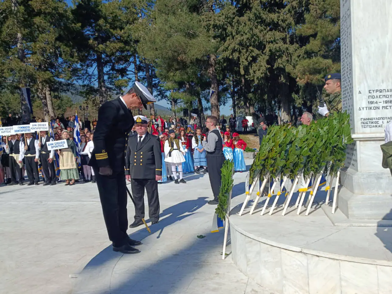 Ακολούθησε η επιμνημόσυνη δέηση στο Μνημείο Ηρώων και κατάθεση στεφάνων από τον εκπρόσωπο του προέδρου της Κυβέρνησης, υφυπουργού Υποδομών & Μεταφορών κ. Μιχάλη Παπαδόπουλο, την εκπρόσωπο της Βουλής, βουλευτή Πιερίας κα Άννα Μάνη-Παπαδημητρίου, τον Δήμαρχο Δίου-Ολύμπου Βαγγέλη Γερολιόλιο, την Αντιπεριφερειάρχη Πιερίας κα Σοφία Μαυρίδου, τον Δήμαρχο Γερμασόγειας Κύπρου κ. Κυριάκο Ξυδιά, τον πρόεδρο της Κοινότητας Λιτοχώρου κ. Ευστράτιο Κυριακάκη, τον Υποδιοικητή της 24ης Τεθωρακισμένης Ταξιαρχίας, τον εκπρόσωπο της Ελληνικής Αστυνομίας, Ταξίαρχο κ. Γεώργιο Τζήμα, τον εκπρόσωπο του Λιμενικού Σώματος και τον διευθυντή των Πυροσβεστικών Υπηρεσιών Πιερίας, Πύραρχο Παναγιώτη Πατσιαλή. Στεφάνι κατατέθηκε επίσης από εκπρόσωπο της Εθνικής Αντίστασης, την προϊσταμένη της Διεύθυνσης Α’θμιας Εκπαίδευσης Πιερίας κα Παρθένα Τριανταφυλλίδου και τον προϊστάμενο της Διεύθυνσης Β’θμιας Εκπαίδευσης Πιερίας κ. Γεώργιο Μακρή.