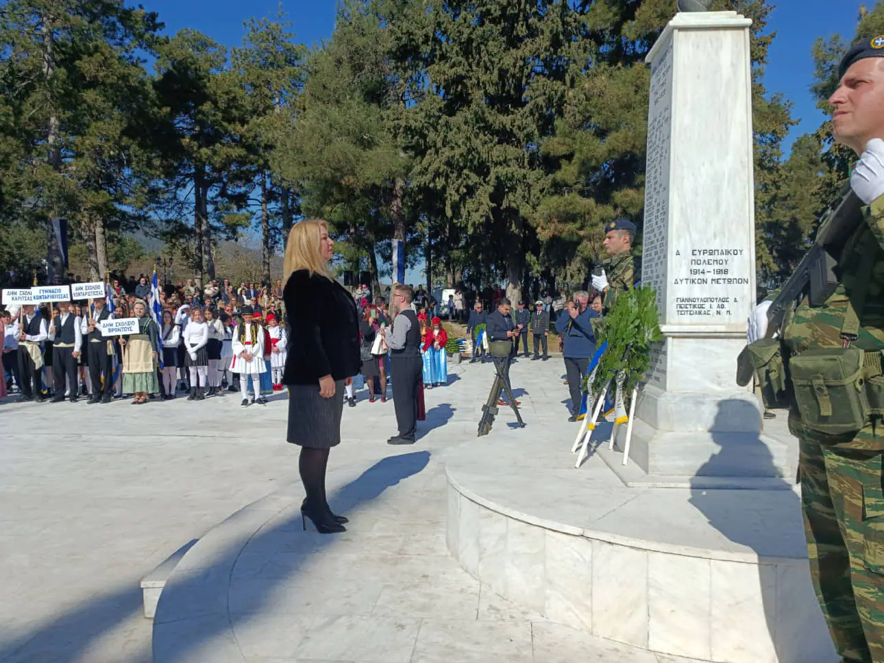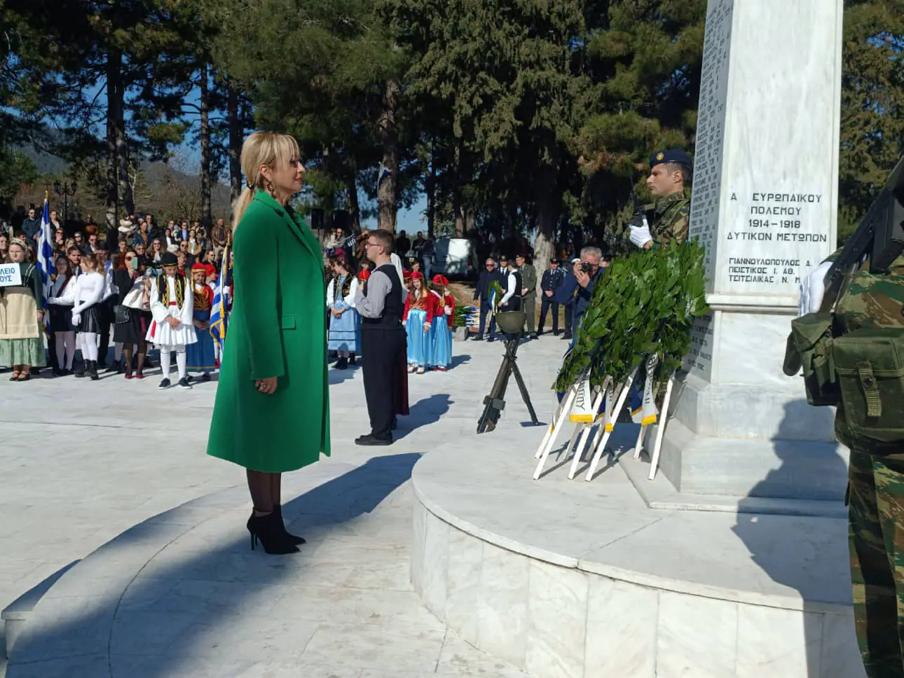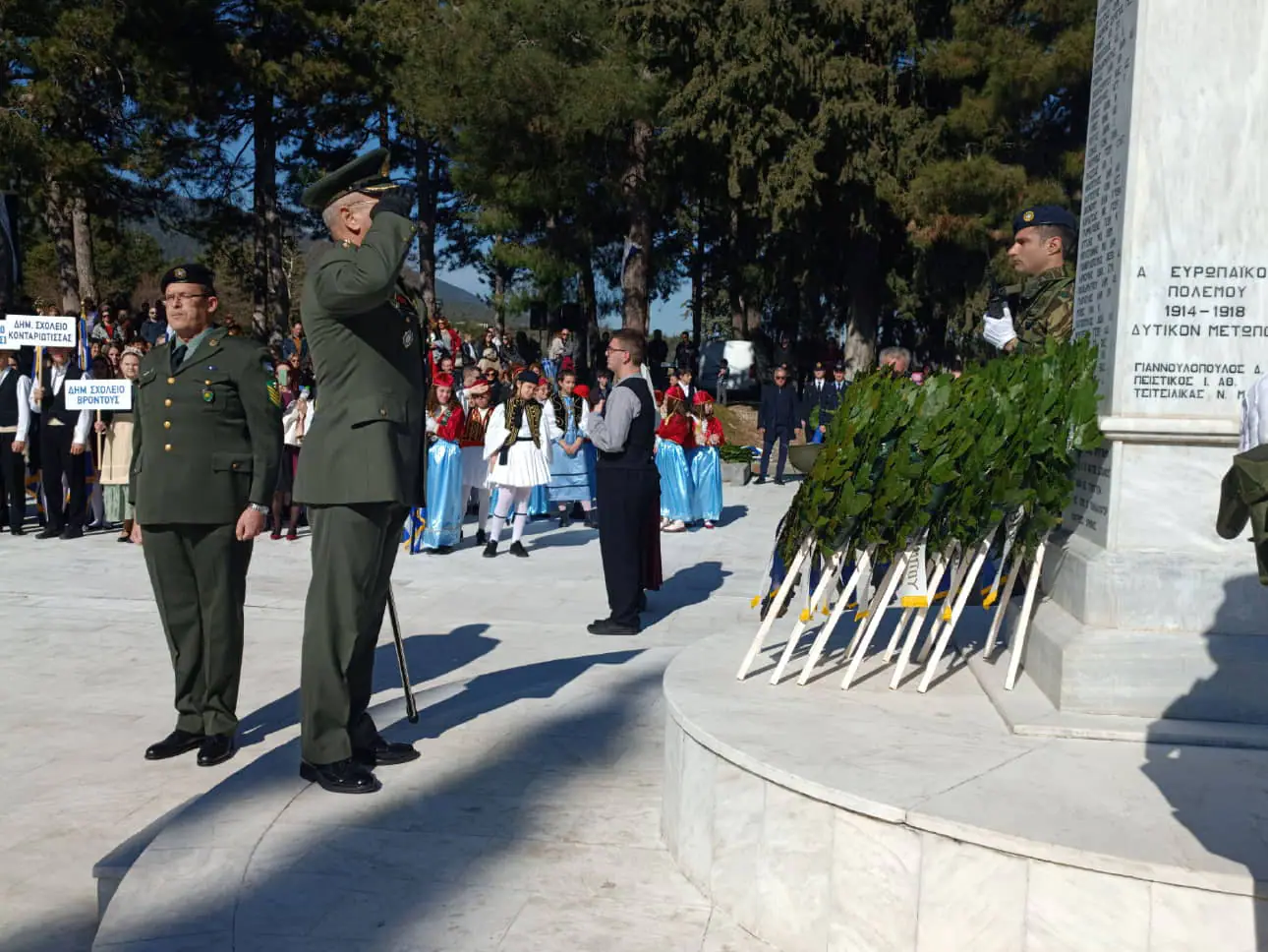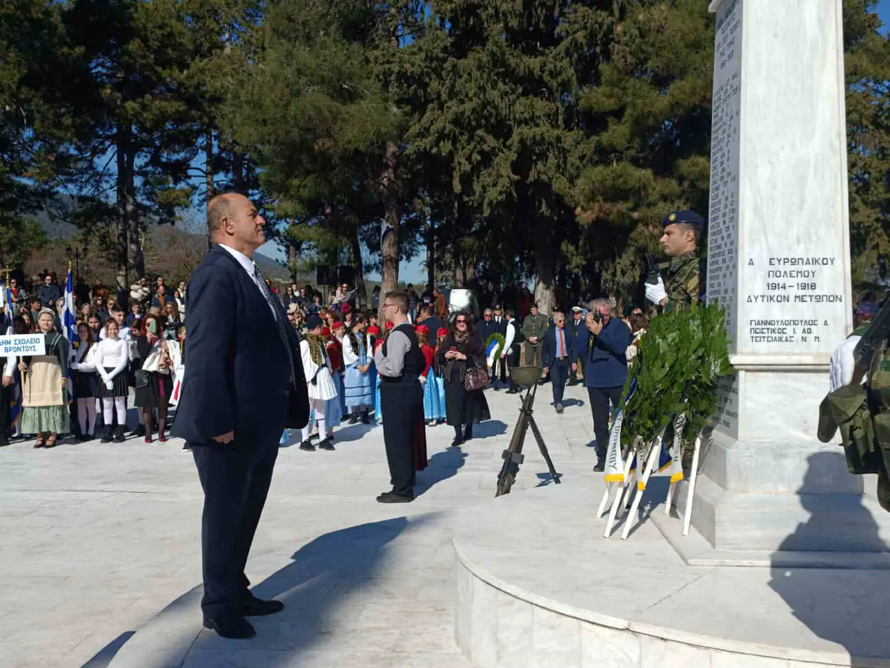 Ακολούθησε η επιμνημόσυνη δέηση στο Μνημείο Ηρώων και κατάθεση στεφάνων από τον εκπρόσωπο του προέδρου της Κυβέρνησης, υφυπουργού Υποδομών & Μεταφορών κ. Μιχάλη Παπαδόπουλο, την εκπρόσωπο της Βουλής, βουλευτή Πιερίας κα Άννα Μάνη-Παπαδημητρίου, τον Δήμαρχο Δίου-Ολύμπου Βαγγέλη Γερολιόλιο, την Αντιπεριφερειάρχη Πιερίας κα Σοφία Μαυρίδου, τον Δήμαρχο Γερμασόγειας Κύπρου κ. Κυριάκο Ξυδιά, τον πρόεδρο της Κοινότητας Λιτοχώρου κ. Ευστράτιο Κυριακάκη, τον Υποδιοικητή της 24ης Τεθωρακισμένης Ταξιαρχίας, τον εκπρόσωπο της Ελληνικής Αστυνομίας, Ταξίαρχο κ. Γεώργιο Τζήμα, τον εκπρόσωπο του Λιμενικού Σώματος και τον διευθυντή των Πυροσβεστικών Υπηρεσιών Πιερίας, Πύραρχο Παναγιώτη Πατσιαλή. Στεφάνι κατατέθηκε επίσης από εκπρόσωπο της Εθνικής Αντίστασης, την προϊσταμένη της Διεύθυνσης Α’θμιας Εκπαίδευσης Πιερίας κα Παρθένα Τριανταφυλλίδου και τον προϊστάμενο της Διεύθυνσης Β’θμιας Εκπαίδευσης Πιερίας κ. Γεώργιο Μακρή.