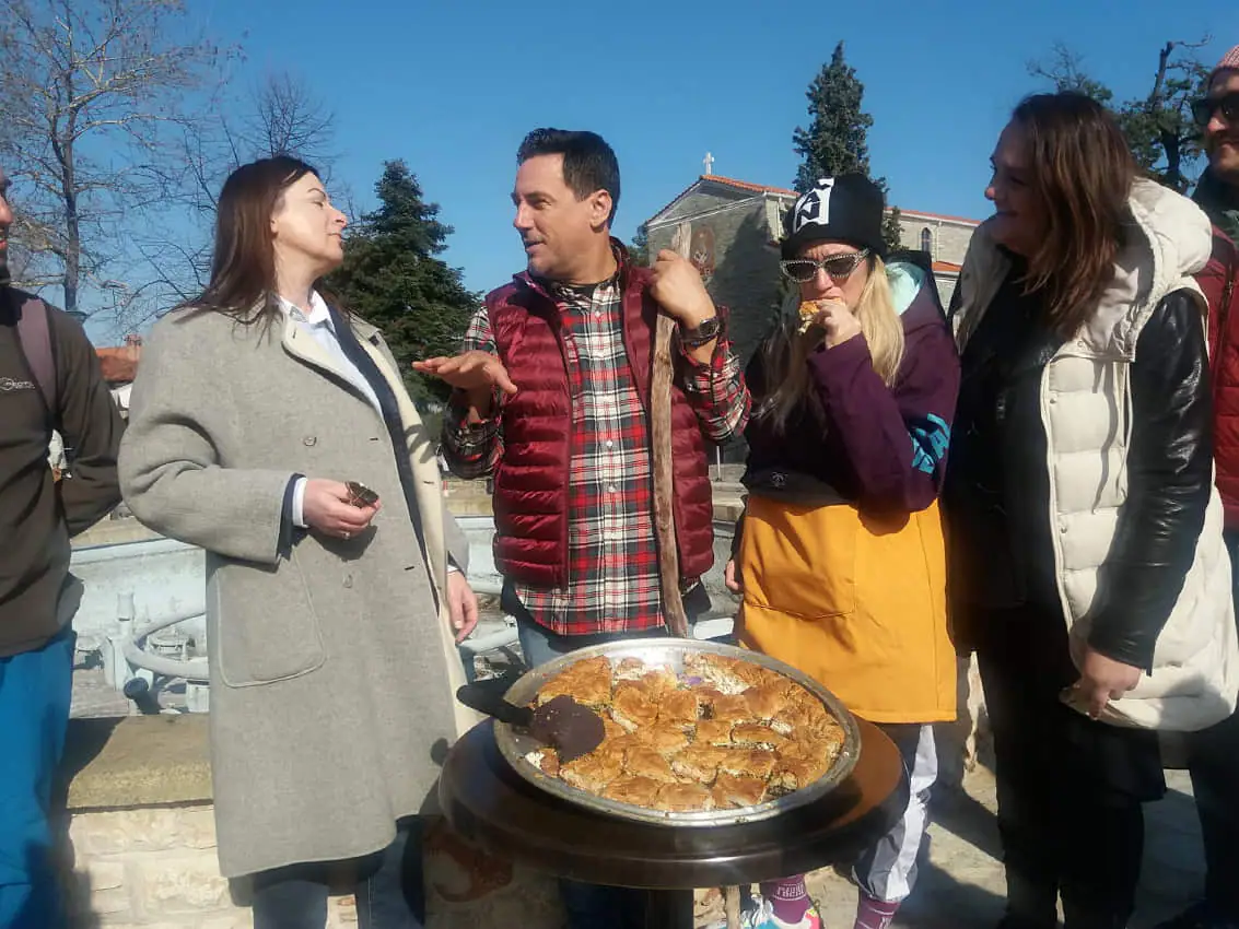 Στο πλαίσιο της γνωριμίας τους με τον γαστρονομικό πλούτο της περιοχής, οι επισκέπτες δημοσιογράφοι γεύτηκαν παραδοσιακά προϊόντα, όπως μεταξύ άλλων το τσάι και το μέλι Ολύμπου, κάστανα καθώς και την παραδοσιακή πίτα από τραγί, προσφορά του αρτοποιείου “Ήδιστος”.