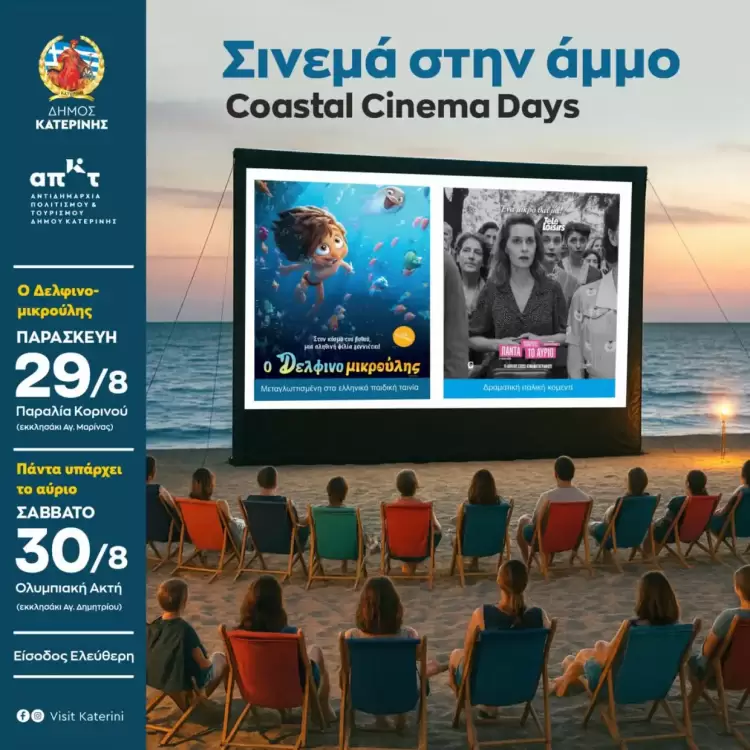 Τη δυνατότητα σε κατοίκους και επισκέπτες να απολαύσουν σινεμά σε ένα διαφορετικό, καλοκαιρινό σκηνικό, ενισχύοντας παράλληλα την πολιτιστική ταυτότητα και την τουριστική εικόνα της περιοχής δίνει ο Δήμος Κατερίνης/Αντιδημαρχία Πολιτισμού -Τουρισμού.