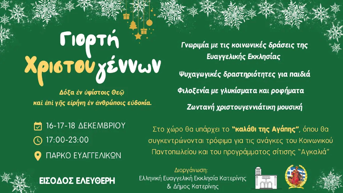 Ψυχαγωγικές δραστηριότητες για παιδιά, Φιλοξενία με εδέσματα, Ζωντανή χριστουγεννιάτικη μουσική.
