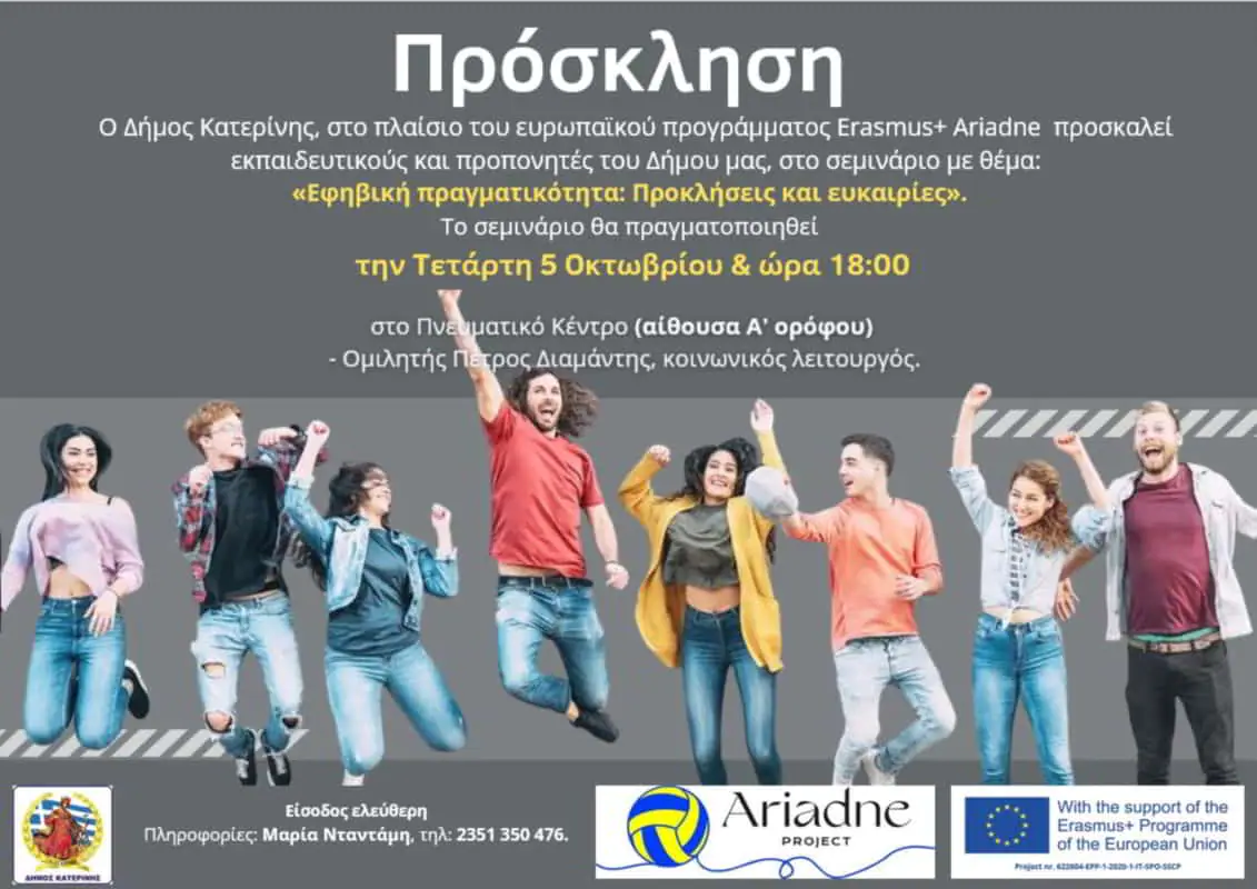 Σεμινάριο με θέμα «Εφηβική πραγματικότητα: Προκλήσεις και ευκαιρίες»Δήμος Κατερίνης: Σεμινάριο με θέμα «Εφηβική πραγματικότητα: Προκλήσεις και ευκαιρίες»