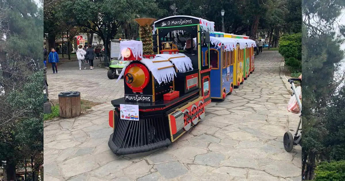 Ο χαρακτηριστικός ήχος του κουδουνιού του πολύχρωμα στολισμένου «Μουτζούρη» ηχεί και επιβιβάζει συνεχώς, δεκάδες παιδιά για μία όμορφη βόλτα στο δημοτικό πάρκο.