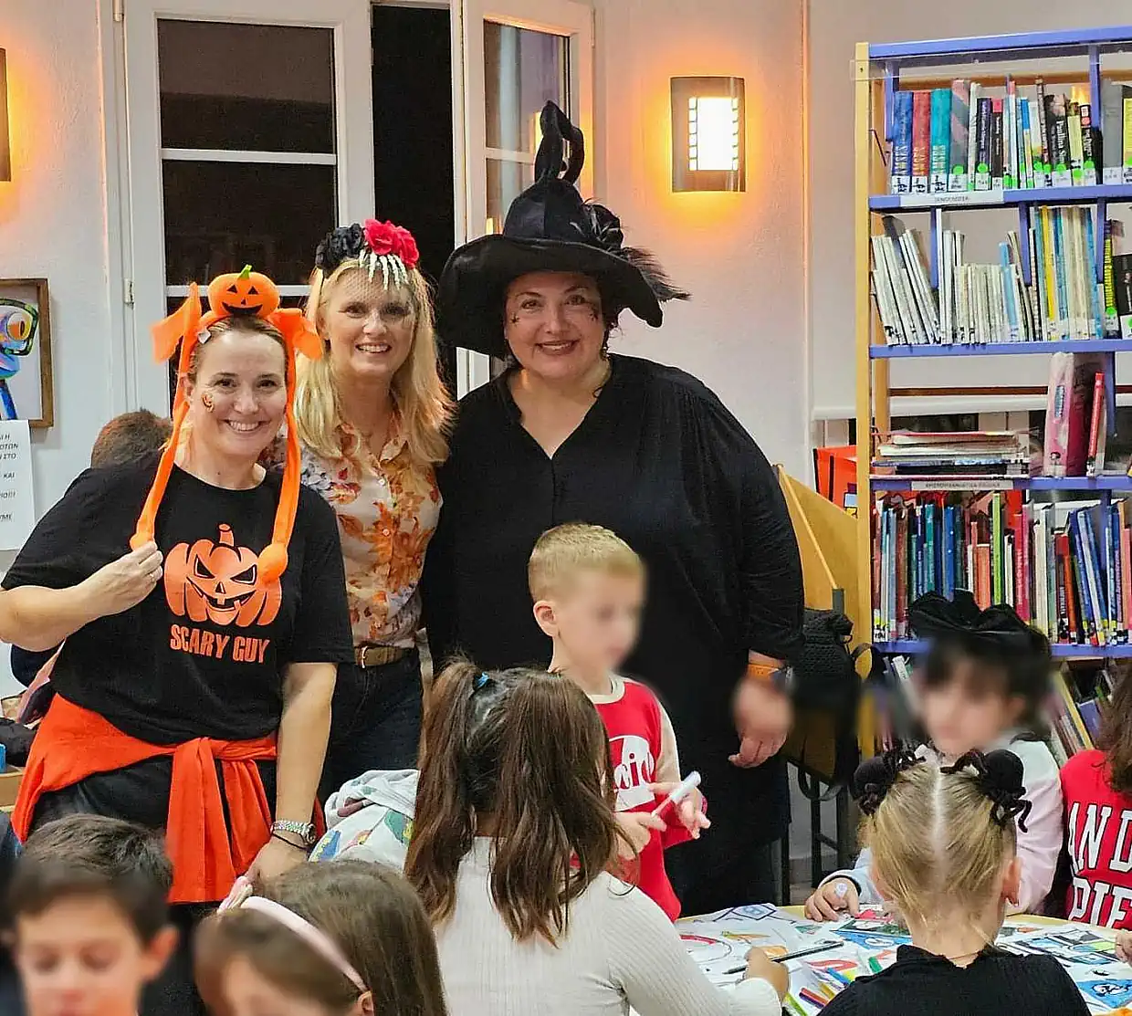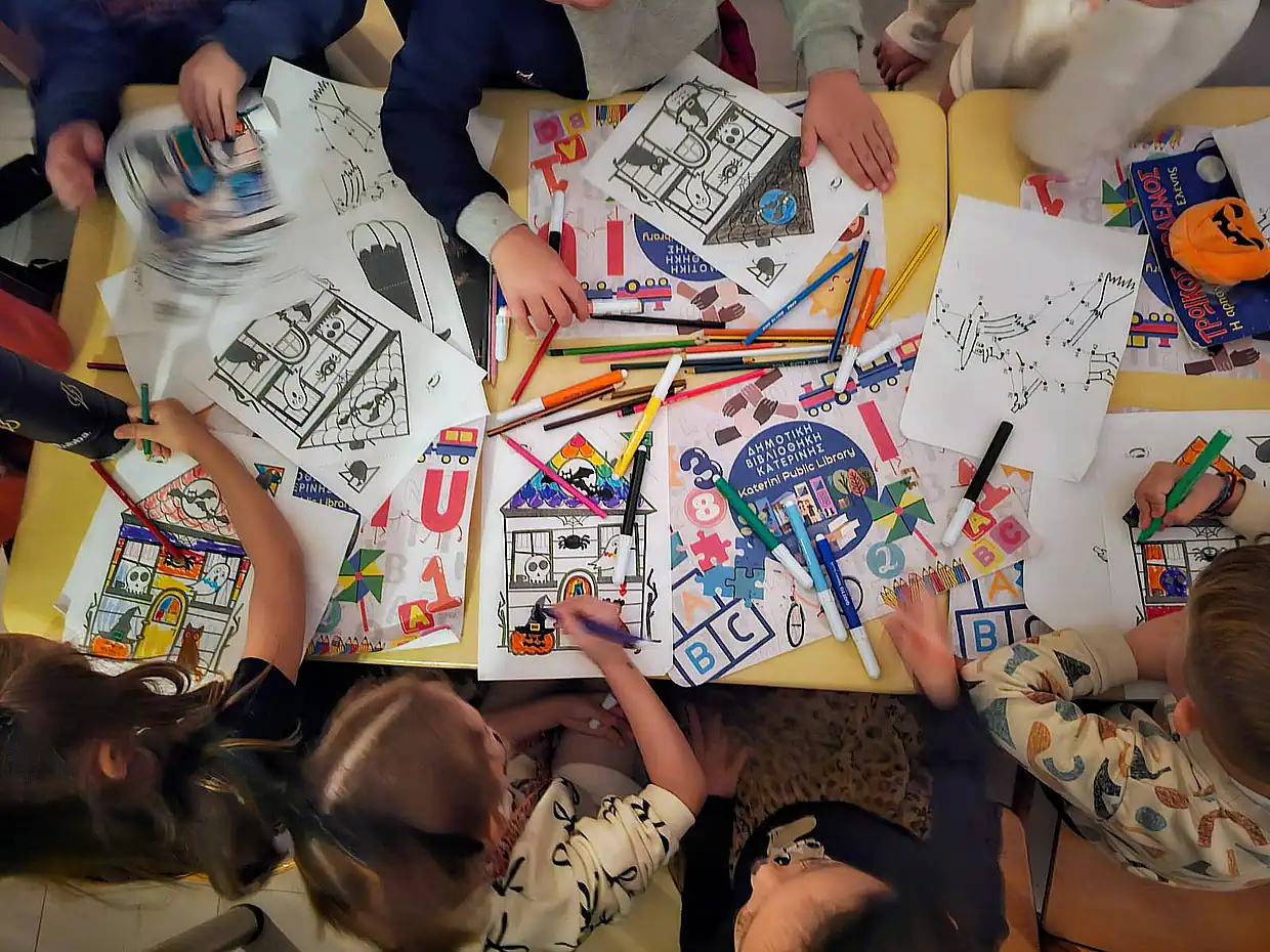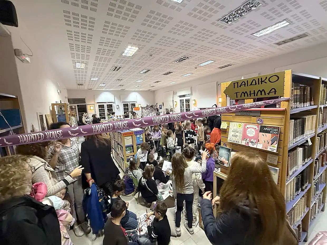 Η Δημοτική Βιβλιοθήκη Κατερίνης, και όλες οι αίθουσες του Α’ ορόφου του Πνευματικού Κέντρου γέμισαν ασφυκτικά το βράδυ της περασμένης Δευτέρας, με παιδικά χαμόγελα. Σε κλίμα μυστηρίου και ατελείωτης περιπέτειας, με φόντο κίτρινες κολοκύθες, «μάγισσες», γιρλάντες, το Halloween στάθηκε μόνο η αφορμή, ώστε η Δημοτική Βιβλιοθήκη να φιλοξενήσει μία μαραθώνια φθινοπωρινή γιορτή, συγκεντρώνοντας περισσότερα από 200 παιδιά.