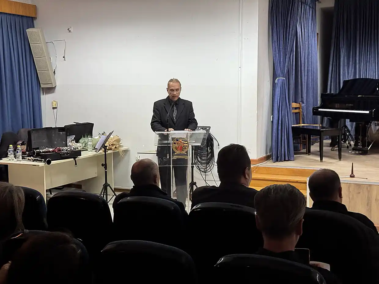 Χαιρετισμό απεύθυνε ο Αντιδήμαρχος Αθλητισμού, Παιδείας & Δημοτικού Ωδείου, Γιώργος Κοκαβίδης, ο οποίος ευχαρίστησε το κοινό για την ανταπόκριση, μετέφερε τις ευχαριστίες του Δημάρχου, Ι. Ντούμου και τόνισε χαρακτηριστικά: «Η σύμπραξη των δύο συνόλων πραγματώνει τόσο τον καλλιτεχνικό όσο και τον εκπαιδευτικό τους στόχο, δίνοντας στο φιλόμουσο κοινό της Κατερίνης την ευκαιρία να απολαύσει εκλεκτά έργα του ορχηστρικού και του χορωδιακού ρεπερτορίου, να γνωρίσει ταλαντούχους νέους καλλιτέχνες και να εμπνεύσει τους σπουδαστές μουσικής της πόλης μας».