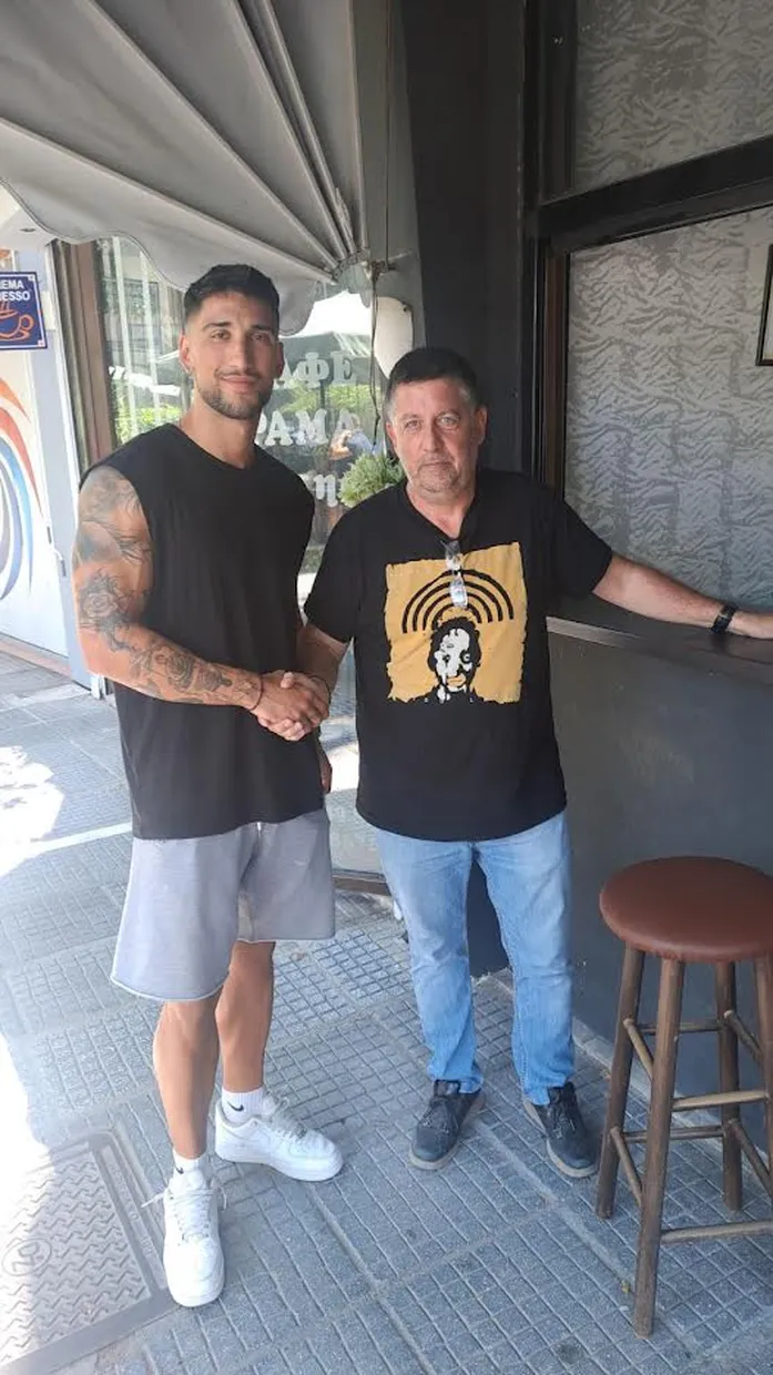 Στη φωτό ο Γενικός γραμματέας του σωματείου Παναγιώτης Παραλυκίδης καλοσωρίζει τον Ευριπίδη Μιτακίδη στον Αιγινιακό.
