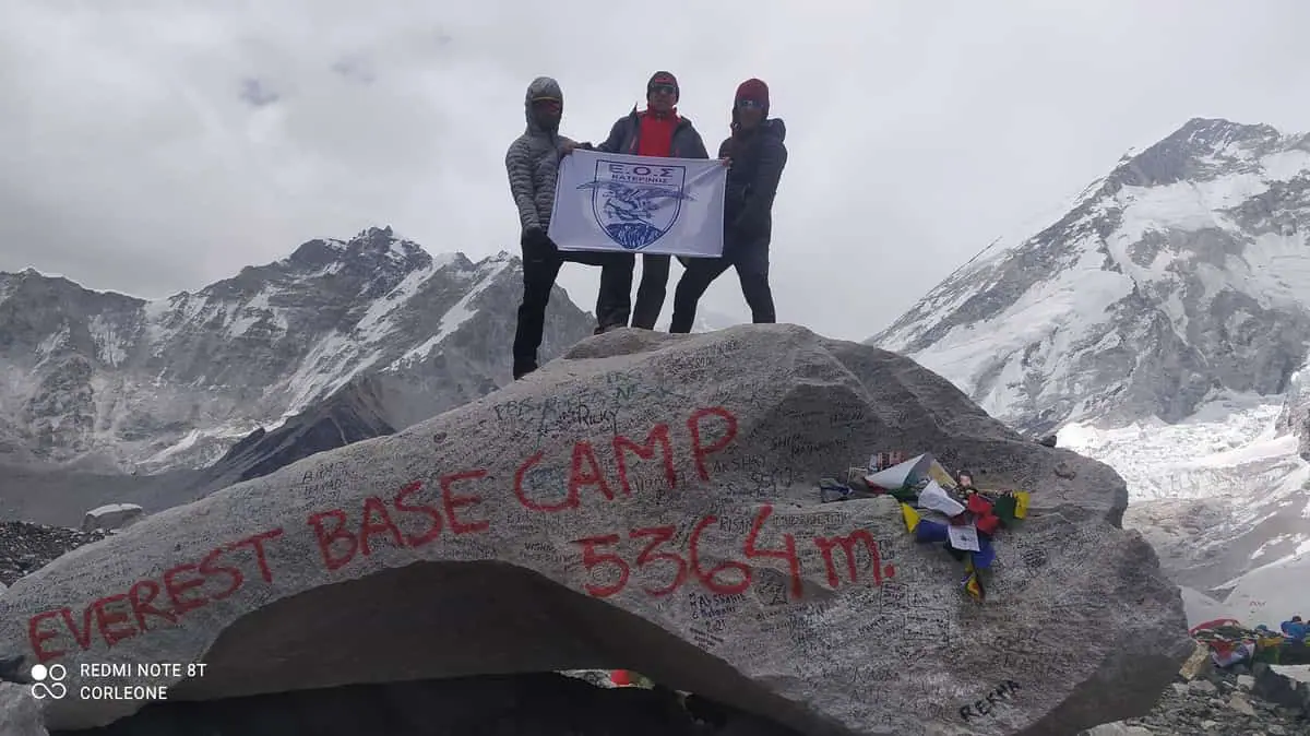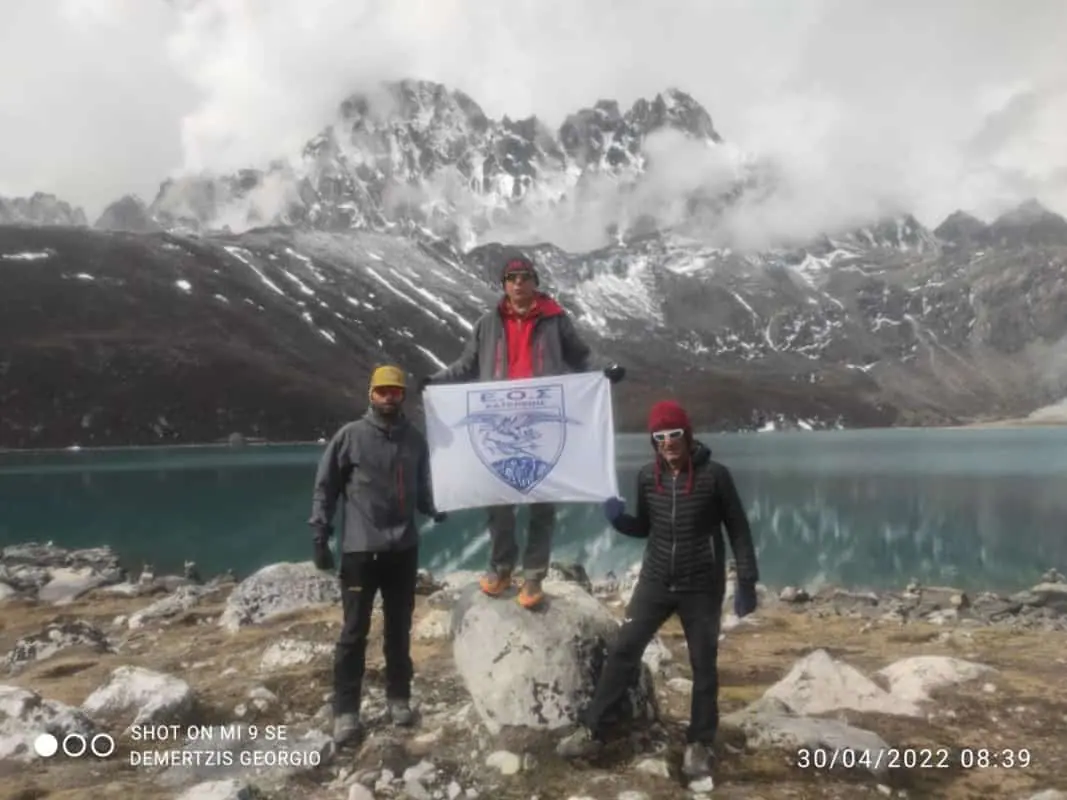 γ) τους ΗΛΙΑΔΗ ΓΙΩΡΓΟ,ΤΟΝ ΚΑΡΑΠΑΝΟ ΠΑΝΑΓΙΩΤΗ ΚΑΙ ΤΟΝ ΔΕΡΜΕΤΖΗ ΓΙΩΡΓΟ για την διάσχιση τους στο ΝΕΠΑΛ – Κατμαντου -Ιμαλάια Ορη, φθάνοντας στο BACE CAMP υψ 5364μ και στην λίμνη GOKYO RI υψ5100μ. τους ευχόμαστε «ΠΑΝΤΑ ΨΗΛΑ ΒΟΥΝΑ»