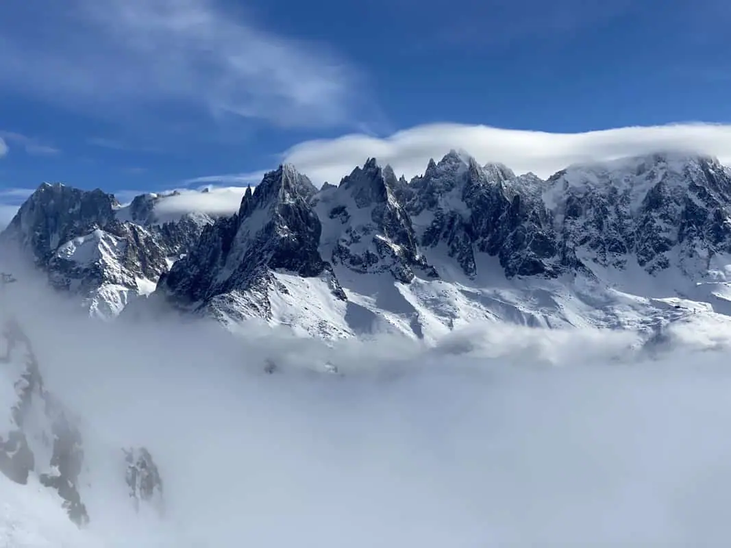 β) τον ΓΙΩΡΓΟ ΑΛΑΜΑΝΑ για την ανάβαση του στο Αιγκύγ ντυ Μιντί ( Aiguille du Midi) , βουνό του ορεινού όγκου του Λευκού Όρους, στις Γαλλικές Άλπεις, κοντά στο Σαμονί ( Chamonix). Έχει ύψος 3.842 μέτρα..