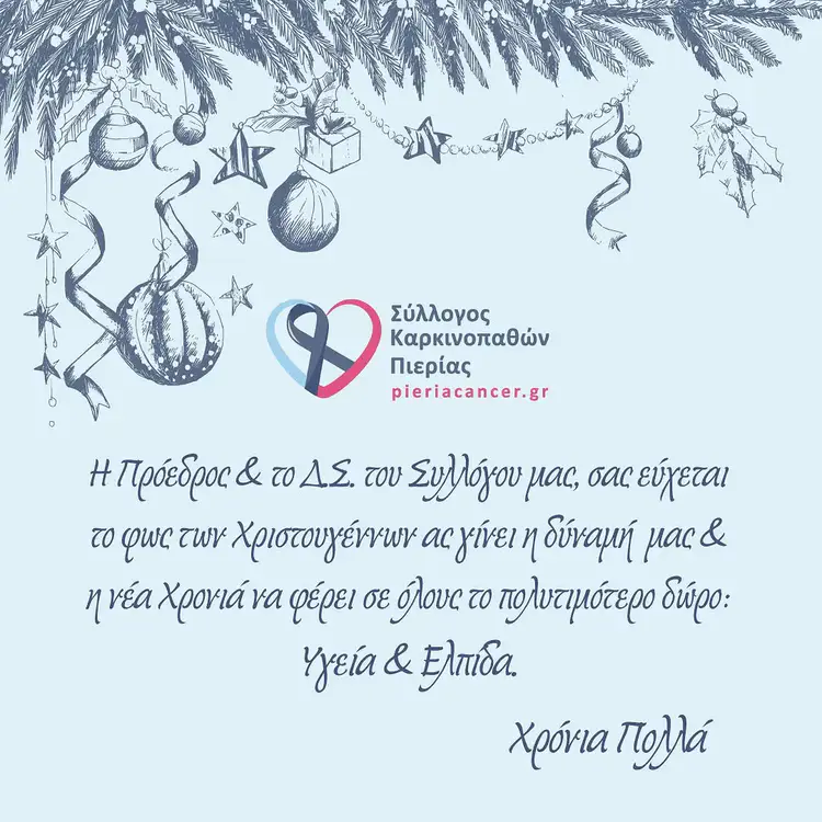 Ευχόμαστε ολόψυχα σε όλους Καλά Χριστούγεννα! Το 2026 να ανατείλει με υγεία, δύναμη, φως και αισιοδοξία. Ας συνεχίσουμε να πορευόμαστε με αλληλεγγύη, μετατρέποντας τον φόβο σε ελπίδα και την προσπάθεια σε νίκη.