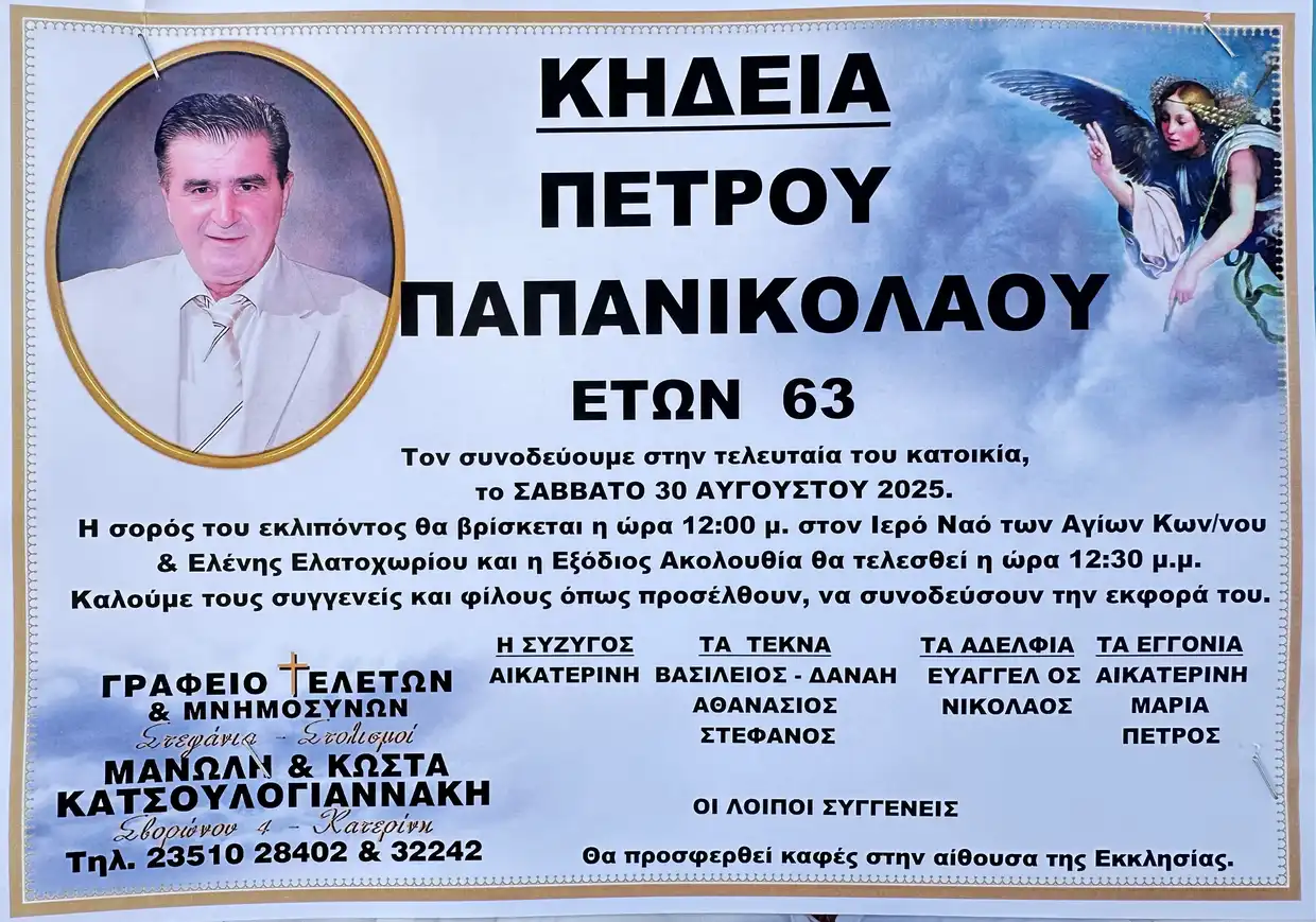 Ολύμπιο Βήμα » Επικαιρότητα » Κοινωνικά » Έφυγε από την ζωή ο Πέτρος Παπανικολάου σε ηλικία 63 ετών