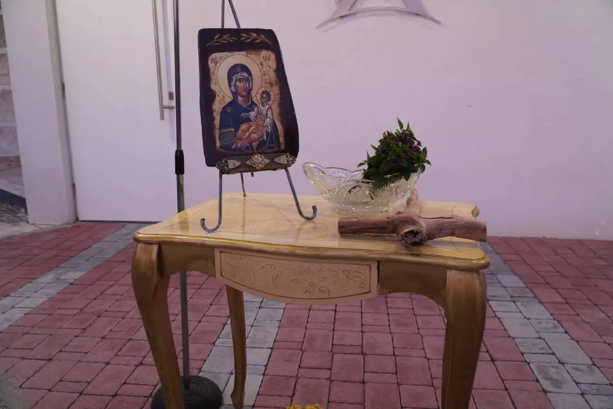 Την ακολουθία του Αγιασμού τέλεσε ο εκπρόσωπος του Σεβασμιωτάτου Μητροπολίτη Κίτρους Κατερίνης & Πλαταμώνος, Πρωτοπρεσβύτερος Ευάγγελος Πουλατσίδης συνεπικουρούμενος από τον Εφημέριο της Ενορίας του Αγίου Δημητρίου Νεοκαισάρειας Πατέρα Σωκράτη Ξενίδη.