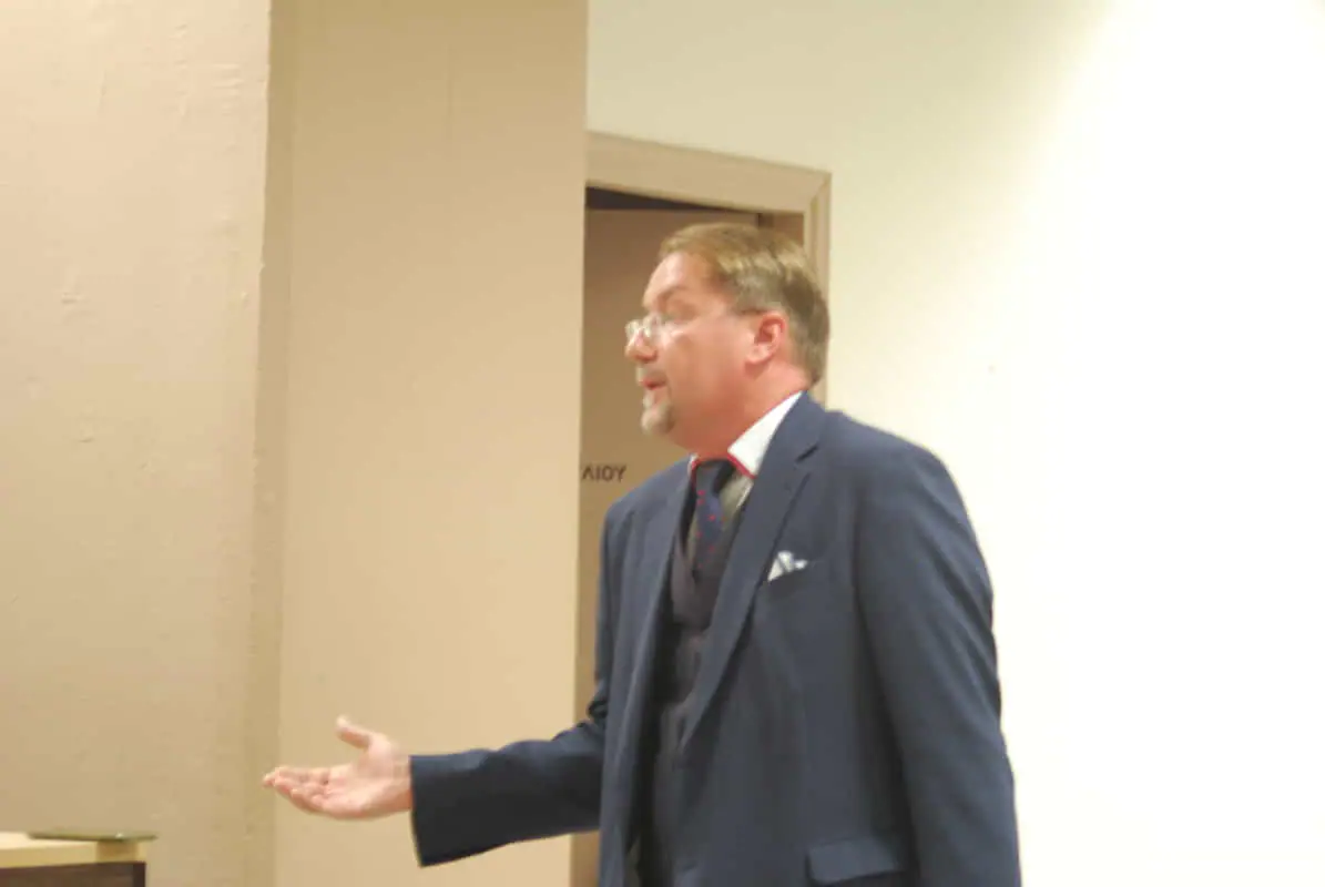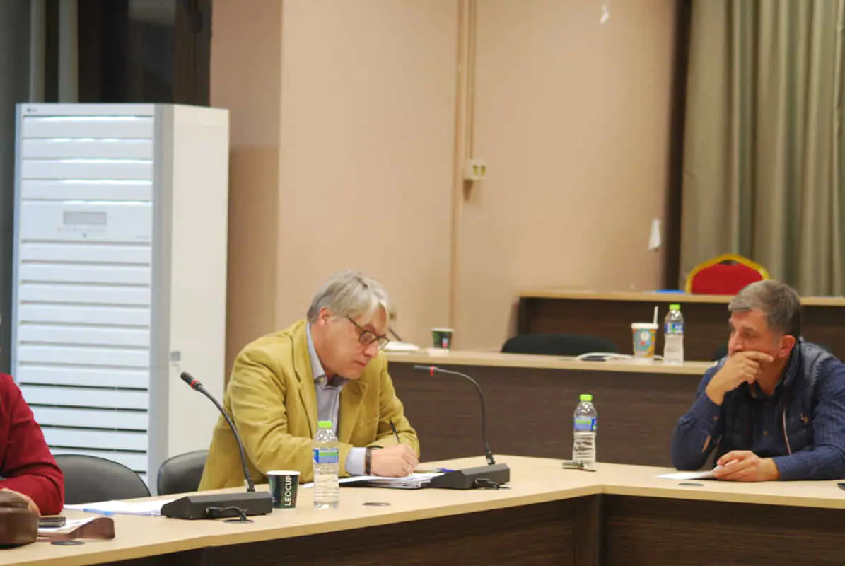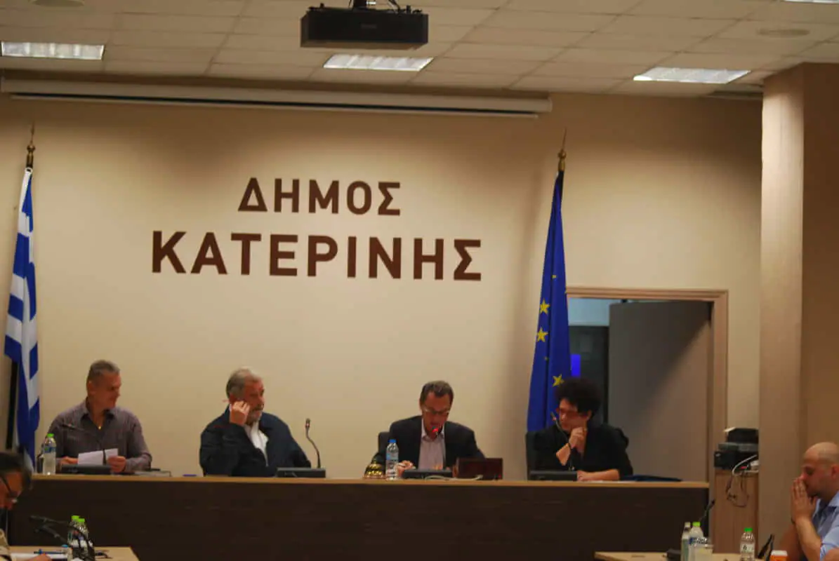 Η συνάντηση έγινε στο Δημοτικό Συμβούλιο Κατερίνης υπό την προεδρεία του προέδρου του Δ.Σ. Θεοφάνη Τερζόπουλου και του Αναπληρωτή Δημάρχου Γιώργου Νταντάμη.