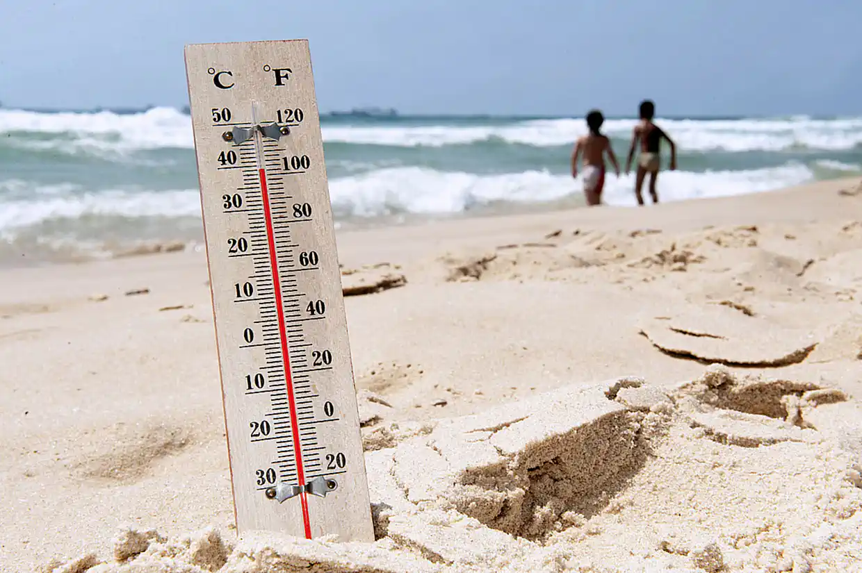 - Στη νησιωτική χώρα η μέγιστη θερμοκρασία θα φτάσει τους 34 με 36 βαθμούς και στα νησιά του ανατολικού Αιγαίου, τα Δωδεκάνησα και την Κρήτη τους 37 με 39 και πιθανόν 40 βαθμούς, ενώ οι ελάχιστες τιμές της θα κυμανθούν περί τους 27 με 28 βαθμούς Κελσίου.