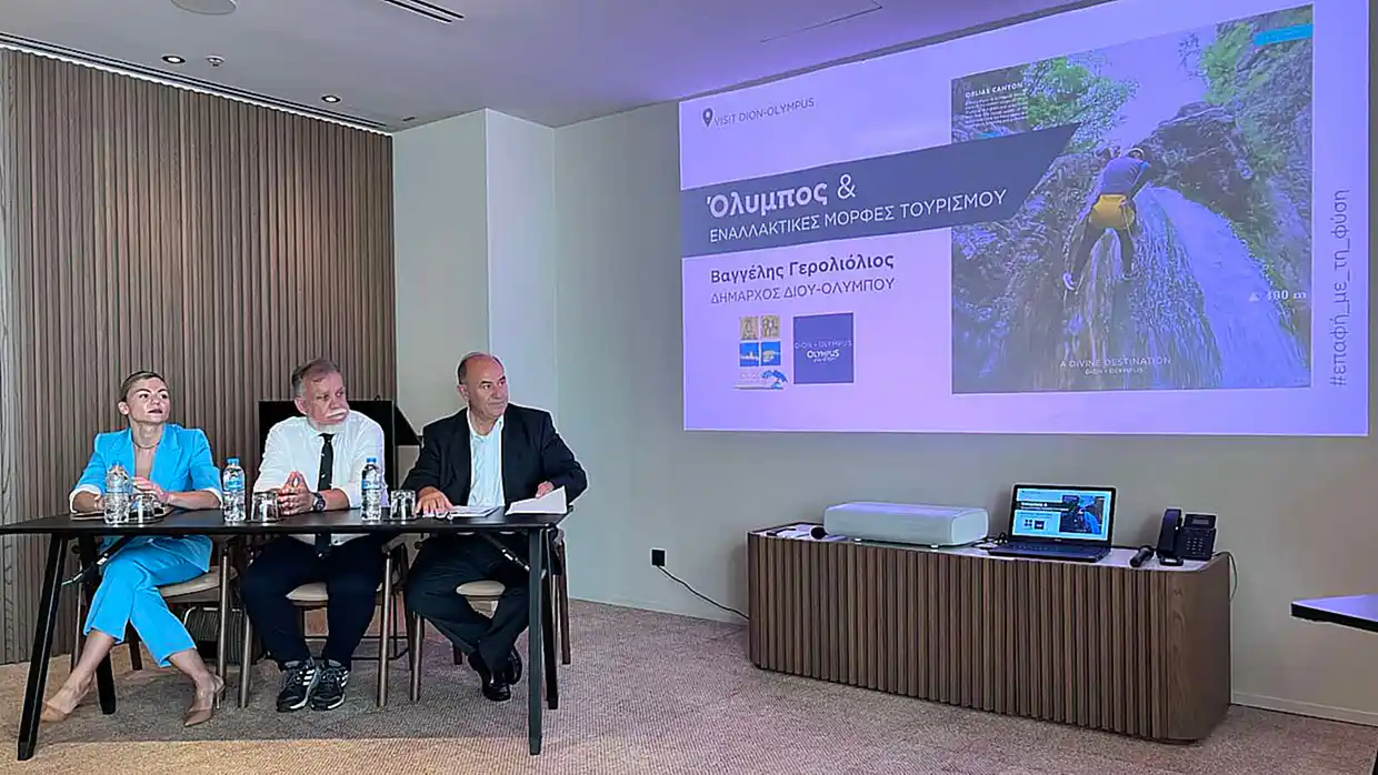 Παρουσίαση των εναλλακτικών μορφών τουρισμού στον Όλυμπο και την παρολύμπια περιοχή από τον Δήμαρχο Δίου-Ολύμπου Βαγγέλη Γερολιόλιο στην ημερίδα «Εναλλακτικός Τουρισμός και Καινοτόμες Προσεγγίσεις» του Υπουργείου Τουρισμού και του Διεθνούς Πανεπιστημίου Ελλάδος