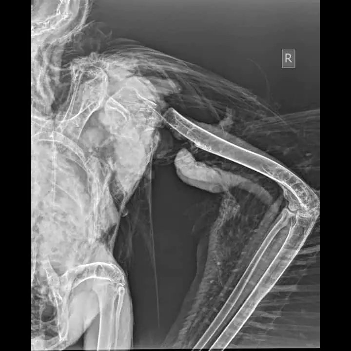 - Ακτινογραφία του νεκρού μαυρόγυπα με ακρωτηριασμένη τη δεξιά φτερούγα