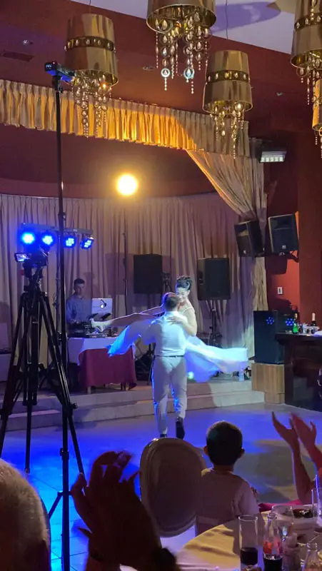 Αρχικά το ζευγάρι έδωσε ένα χορευτικό αντάξιο γνωστής κινηματογραφικής ταινίας και στη συνέχεια το ζευγάρι, οι έλληνες και γερμανοί προσκεκλημένοι εντρύφησαν την ελληνική χορευτική παράδοση με απόλυτη επιτυχία.