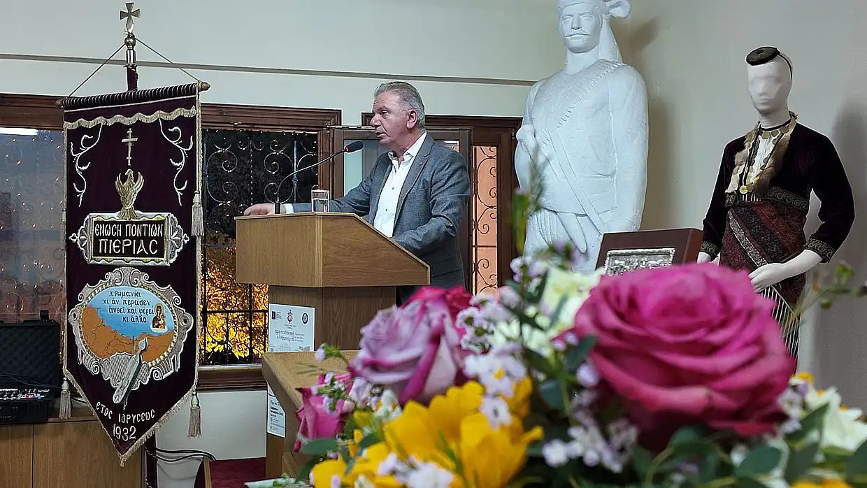 Στη συνέχεια, ο Πρόεδρος προχώρησε στην εισήγηση της Ημερίδας, με τίτλο «Εδώ η Μνήμη έχει Στέγη: Το Μουσείο ως Αιώνια Υπόσχεση της Ποντιακής Πολιτιστικής Κληρονομιάς. Στόχοι, επιδιώξεις και το όραμα για το νέο Μουσείο Ποντίων Κατερίνης-Πιερίας», όπου μεταξύ άλλων ανέφερε: