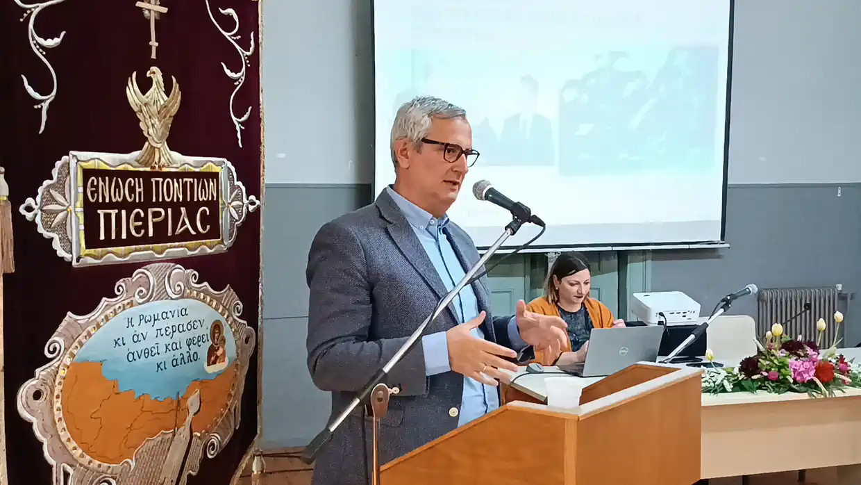 Ομιλία με θέμα «Ρωμαίικα Τραγωδίας: Ποντιακή μουσική, κράτος και πολιτική στην Τουρκία», πραγματοποίησε το βράδυ του Σαββάτου 27 Απριλίου η Ένωση Ποντίων Πιερίας στην Αστική Σχολή Κατερίνης στο πλαίσιο της 3ης πολυθεματικής έκθεσης, η οποία περιελάμβανε μια σειρά εκδηλώσεων όπως νέκθεση κειμηλίων, ζωγραφικής και φωτογραφίας και ολοκληρώθηκε την Κυριακή 28 Απριλίου.