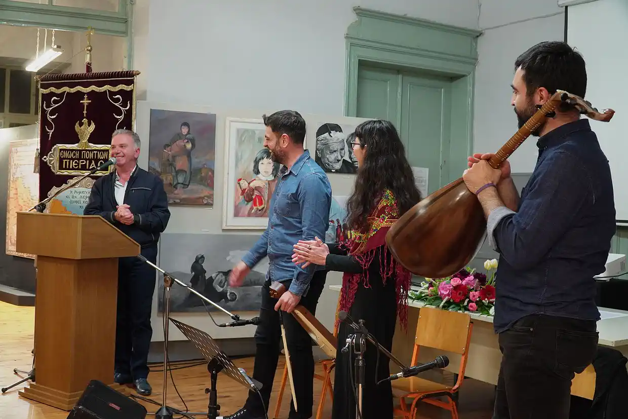 Την Τετάρτη 24 Απριλίου αφού κρατήθηκε ενός λεπτού σιγή στην μνήμη των θυμάτων της Αρμένικης Γενοκτονίας από τους Νεότουρκους, ο υπ. Δρ. Μουσικής του ΠΑΜΑΚ κ. Γιάννης Τσανασίδης πραγματοποίησε ομιλία με θέμα: “Η ΜΟΥΣΙΚΗ ΤΟΥ ΠΟΝΤΟΥ, ΑΠΟ ΤΙΣ ΑΠΑΡΧΕΣ ΤΗΣ ΕΩΣ ΤΑ ΜΕΣΑ ΤΟΥ 20ου ΑΙΩΝΑ“, μία εκτενής αναφορά στη γέννηση και διαδρομή της Ποντιακής μουσικής. Το δεύτερο μέρος της εκδήλωσης, “ΜΟΥΣΙΚΟ ΤΑΞΙΔΙ ΣΤΟΝ ΠΟΝΤΟ“, πλαισιώθηκε με ποντιακές μελωδίες και τραγούδια από το μουσικό σχήμα ¨ΛΕΦΤΟΚΑΡΥΑ¨ με την φωνή της Νατάσας Τσακηρίδου την Λύρα του Γιάννη Τσανασίδη και το Πολίτικο λαούτο του Ιάκωβου Μωυσιάδη.