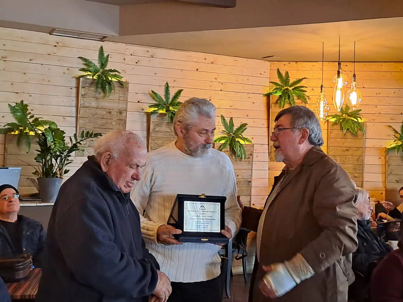 Μετά την κοπή της βασιλόπιτας ο πρόεδρος της Ένωσης, μαζί με τον Δημοτικό Σύμβουλο Ευγένιο Παπαδόπουλου βράβευσαν τον συγγραφέα – ηθοποιό Σταύρο Παρχαρίδη. Ο κος Παπαδόπουλος με συγκίνηση, μίλησε με τα πιο εγκάρδια λόγια για το έργο και τις διακρίσεις που έχει καταφέρει να πάρει ο Σταύρος Παρχαρίδης στα χρόνια της καριέρας του.