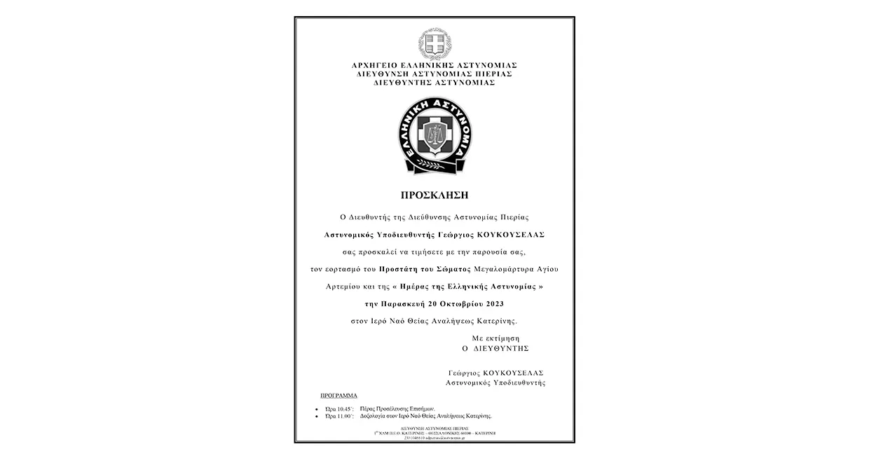 Εορτασμός του Προστάτη του Σώματος Μεγαλομάρτυρα Αγίου Αρτεμίου και της “Ημέρας της Ελληνικής Αστυνομίας”